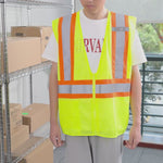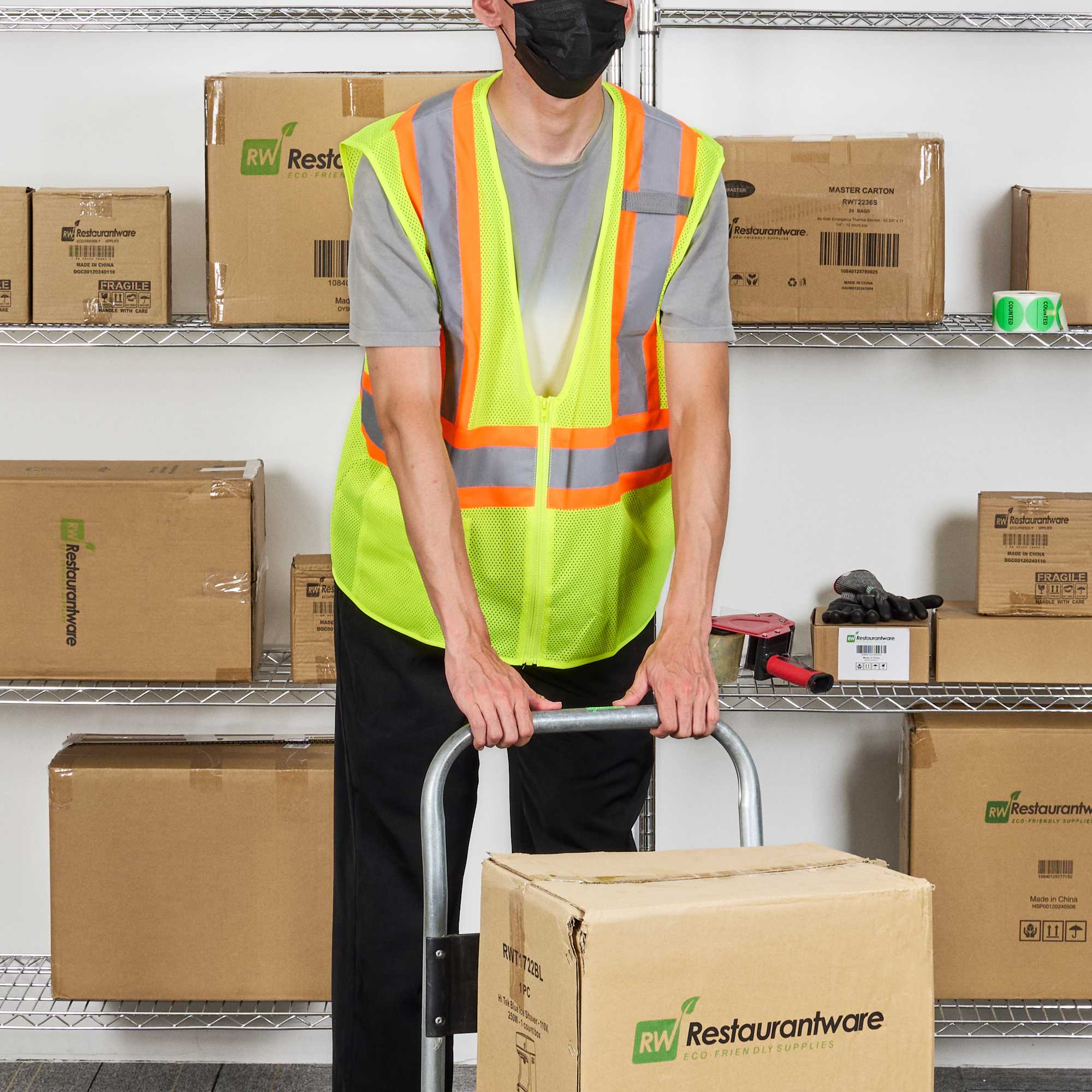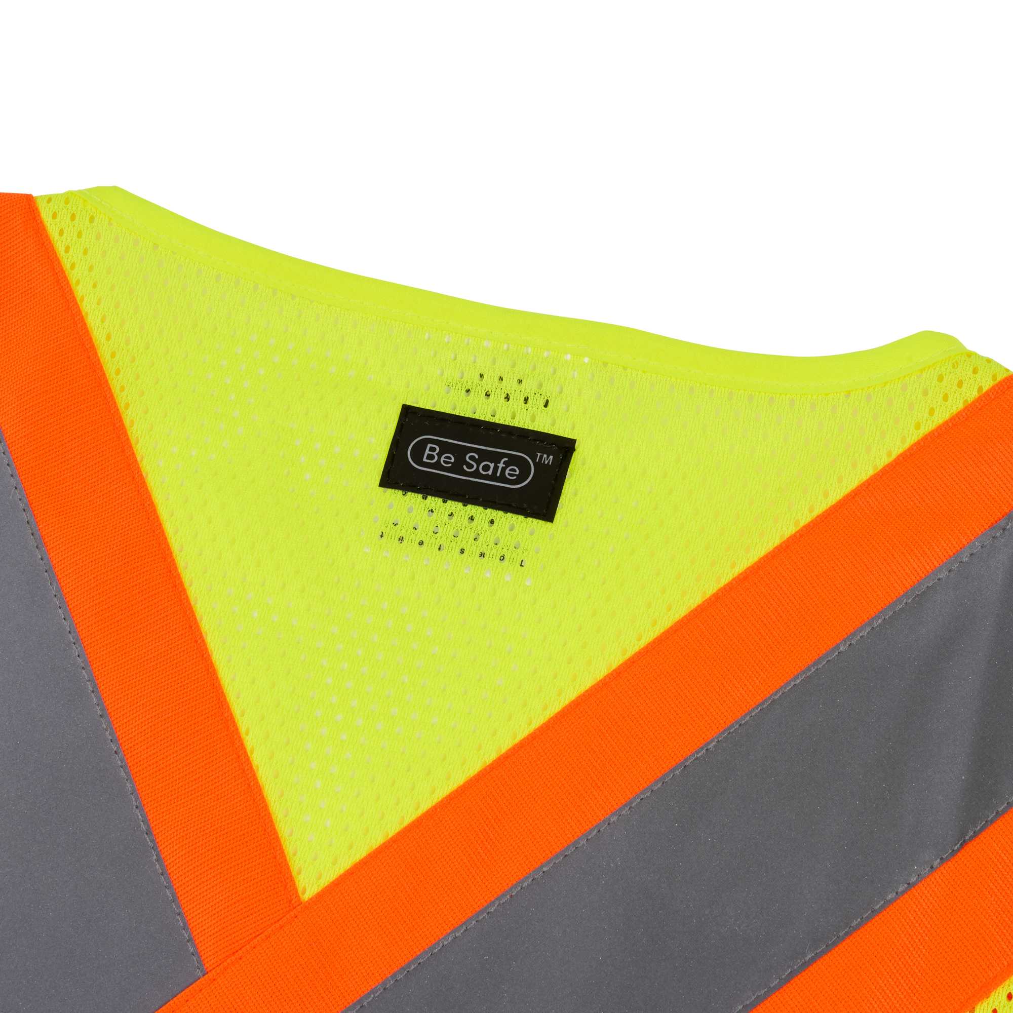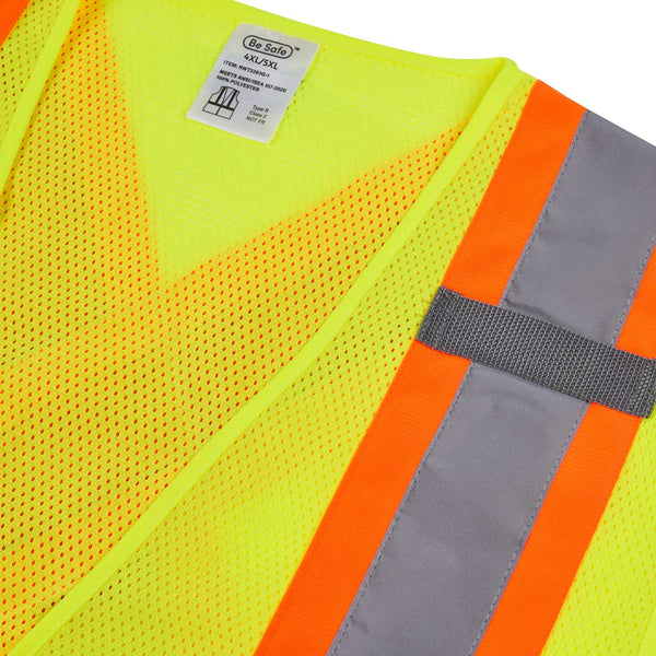 Support large-team safety with our Be Safe Type R Class 2 Lime 4XL/5XL Reflective Mesh Safety Vests. Designed for comfort, these high-visibility vests are made from breathable mesh that keeps workers cool on demanding job sites. The X-back reflective tape and vibrant lime color improve visibility across varying light conditions. Featuring a zipper front closure, each vest delivers a secure fit tailored to extended sizes. The integrated inner pocket provides space to keep tools or notes within reach. Constructed from machine-washable, recyclable plastic, these vests offer long-lasting use and sustainable disposal. Measuring 30 inches in length by 33 inches in width, these hi vis safety vests accommodate larger wearers while ensuring comfort and security. Sold in a 20 count box.