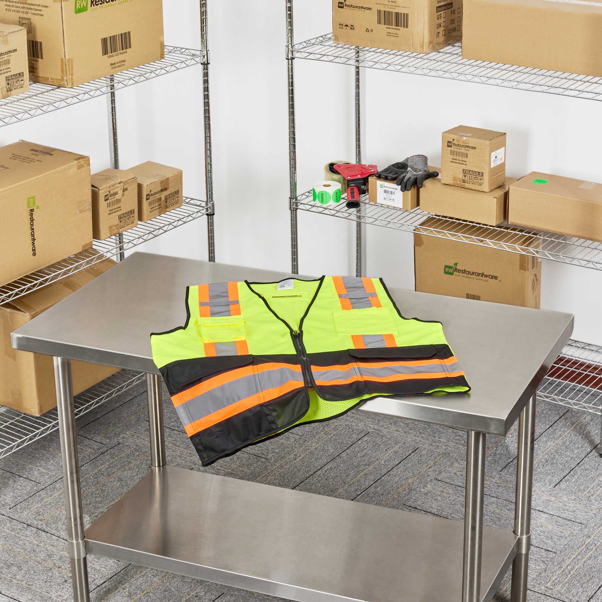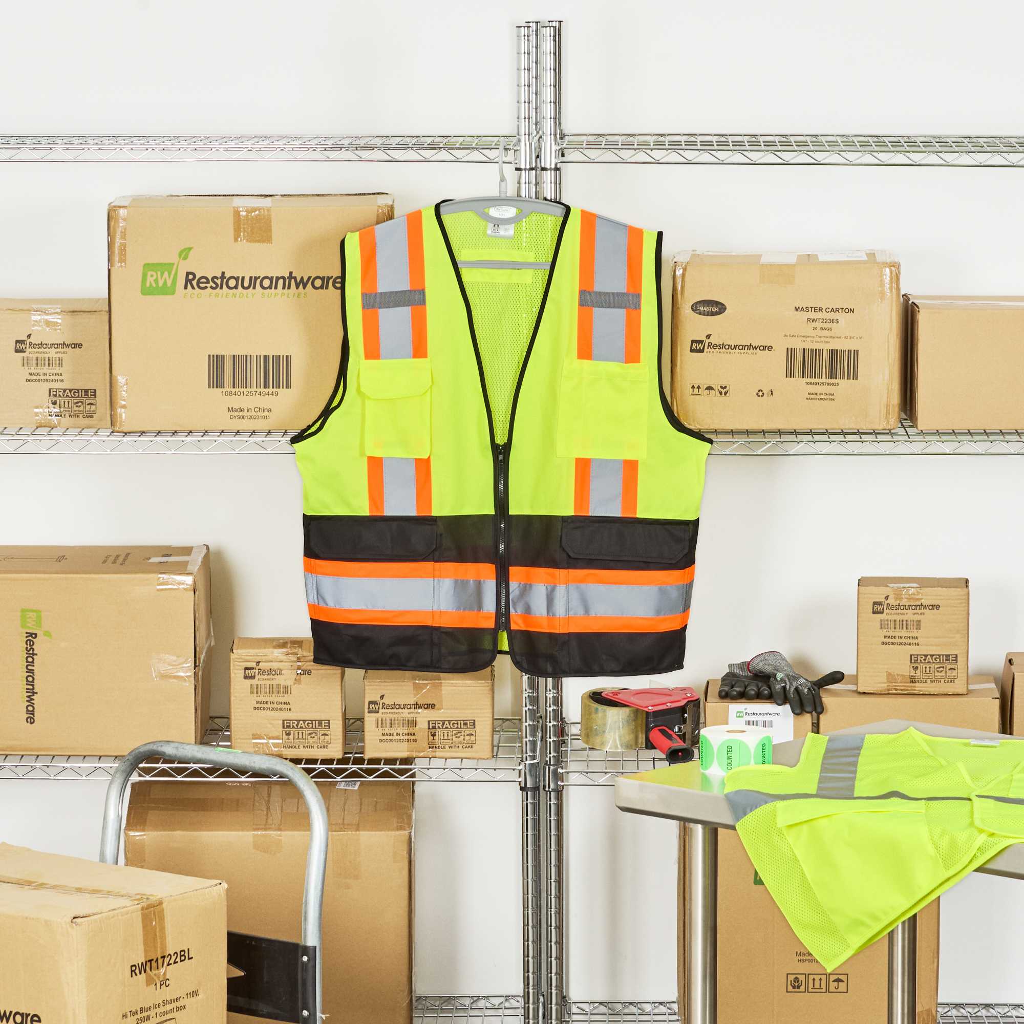 Ensure worker safety with enhanced on-site visibility. The Be Safe High-Visibility High Visibility Vest - Lime, Plastic, Multi-Pocket, Breathable Back, 27.20 inches x 24.80 inches x 0.20 inches stands out with its vibrant lime color and reflective striping, crucial for high visibility vest requirements in demanding environments. This reflective safety vest meets Class 2 standards, ensuring compliance with government regulations and providing peace of mind to construction managers. With multiple pockets, this construction vest allows efficient organization of tools and devices, enhancing operational productivity. The zipper closure ensures a quick and secure fit, saving valuable time for workers needing to gear up swiftly. Constructed from durable yet breathable plastic, this vest offers long-lasting performance while maintaining comfort during extended wear. Each order includes 1 vest.