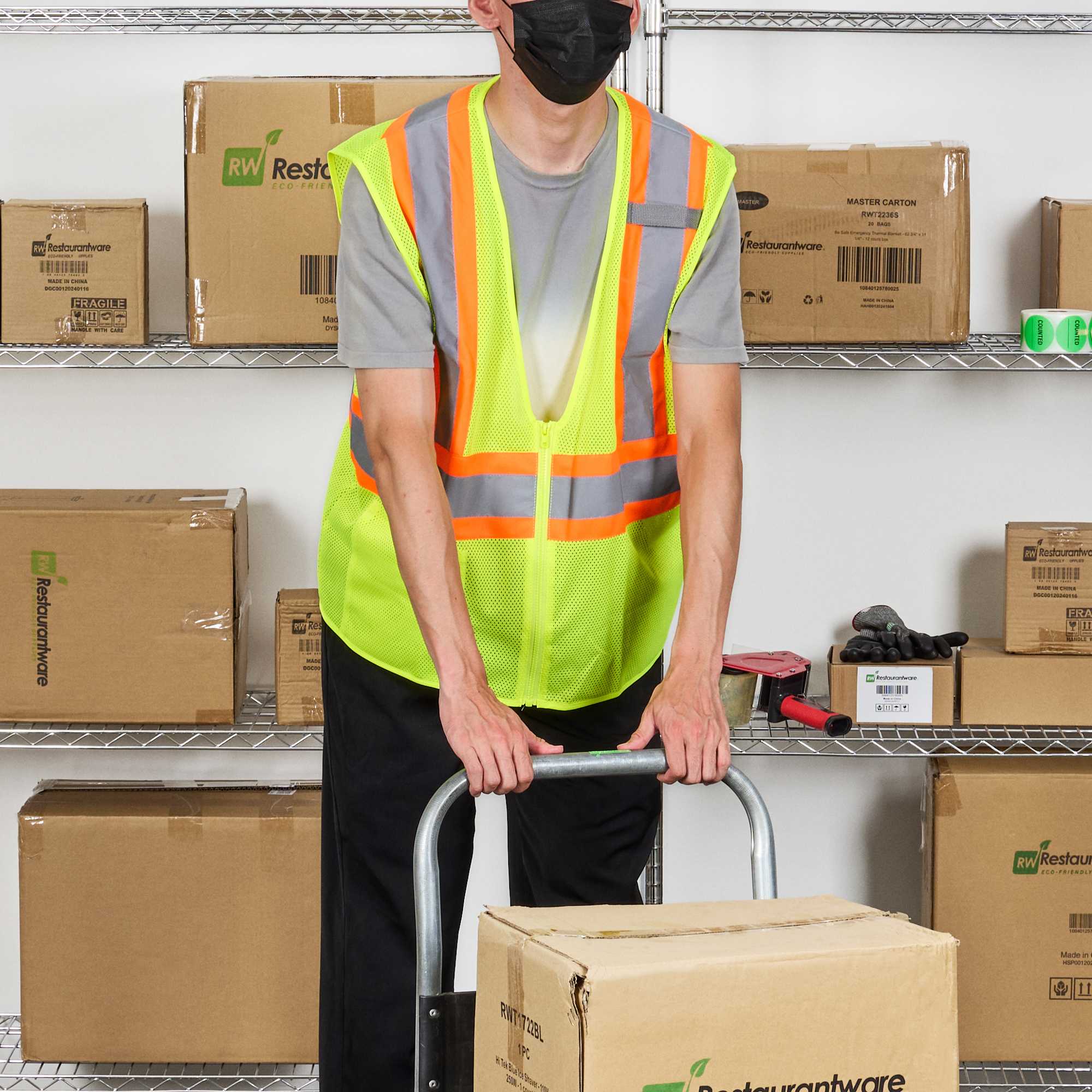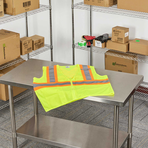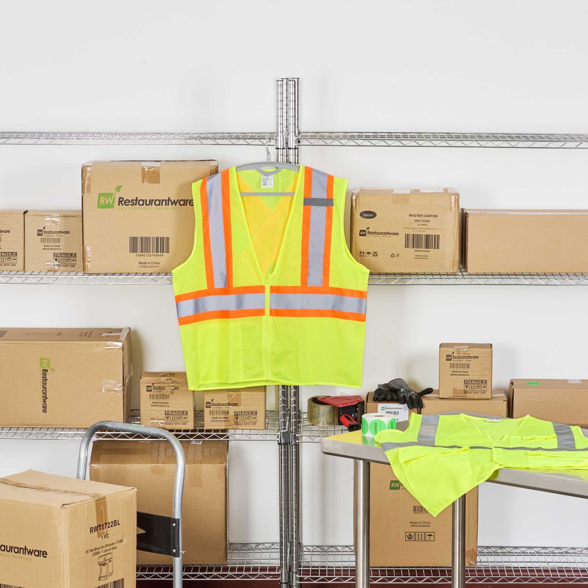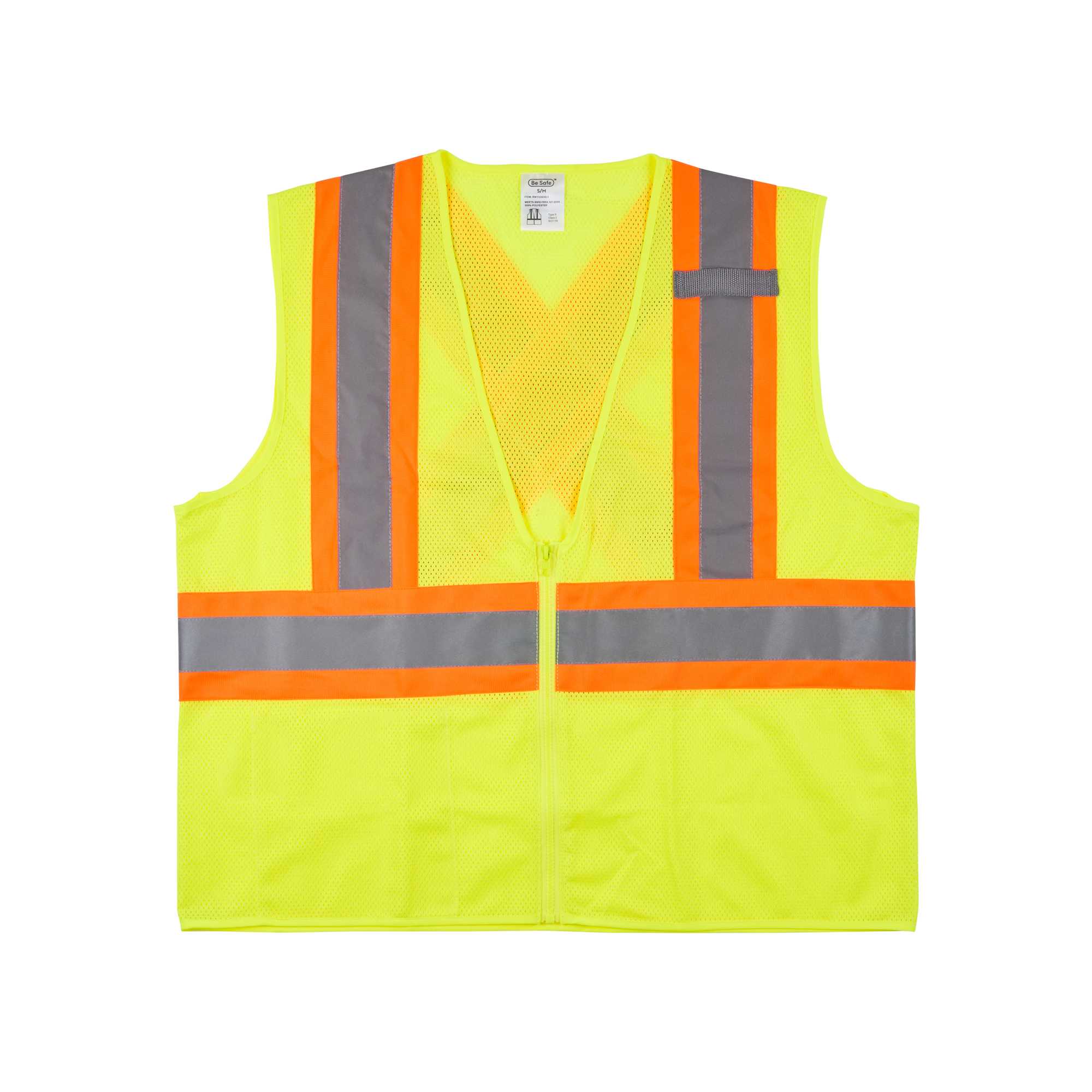 Prioritize on-site safety with our Be Safe Type R Class 2 Lime S/M High Visibility X-Back Reflective Tape Mesh Safety Vests. Constructed from breathable polyester mesh, these lime vests offer maximum airflow to keep workers cool during long shifts. Designed with high-visibility X-back reflective tape, these mesh safety vests significantly improve visibility in low-light or nighttime environments. Fitted with a front zipper closure, these hi vis vests provide a secure and hassle-free fit, enabling workers to move freely without distractions. An internal pocket offers convenient storage for notepads, pens, or small tools, supporting efficient task management on the job. Made from machine-washable plastic, these recyclable reflective vests support durability and sustainable operations in commercial work zones. Measuring 27.2 inches in length by 24.8 inches in width, these high-visibility vests are designed for comfort and safety. Sold in a 20 count box.