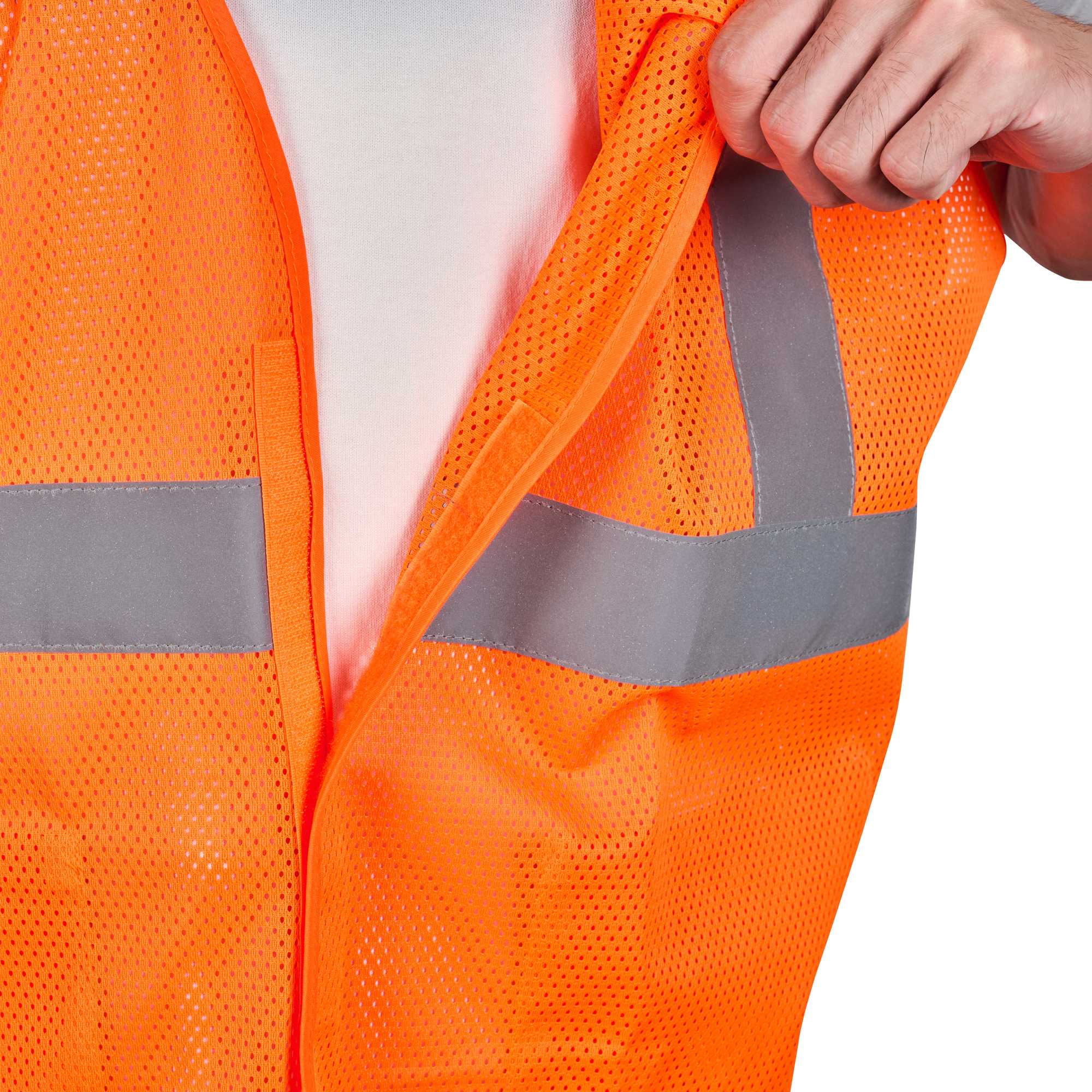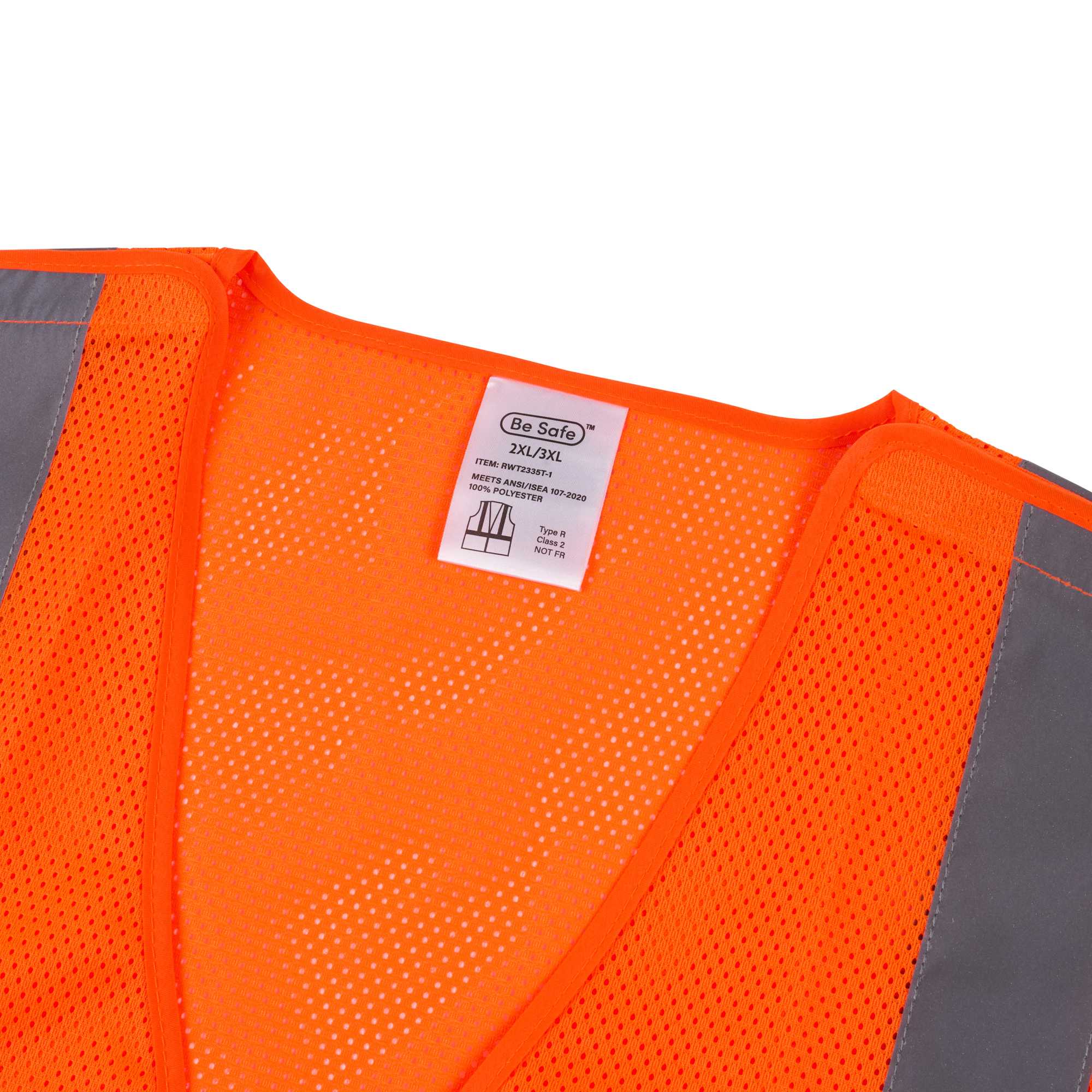 Enhance on-site safety with the Be Safe Breakaway Safety Reflective Safety Vest. This vest features a Class 2 Type R breakaway design, ensuring quick removal in emergencies, making it an essential tear-away safety vest for active job sites. Its wide reflective tape enhances visibility in low light, crucial for compliance and safety, while the vibrant orange plastic material provides high contrast against backgrounds. Equipped with pocket, this construction safety vest conveniently stores order tablets and pens, keeping essentials within reach. The vest's breathable polyester mesh fabric ensures comfort during extended wear, and its machine washable design allows for easy maintenance. Reinforce your team's safety standards and operational efficiency with this reliable tool. Sold in a 1 count box.