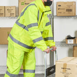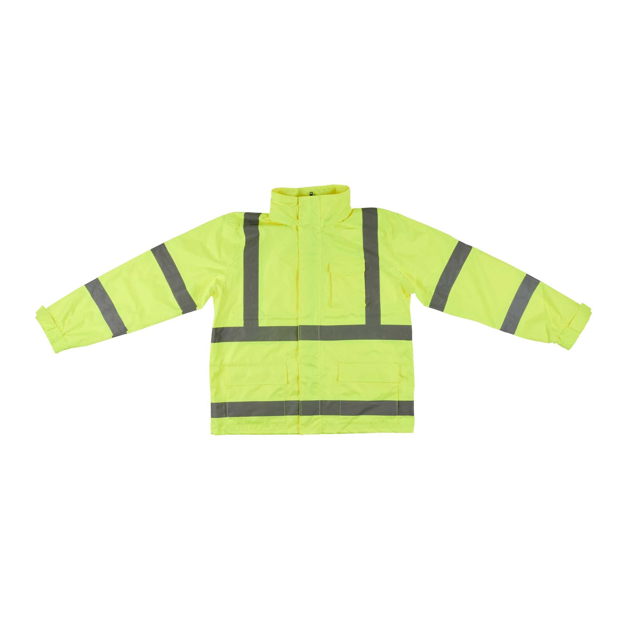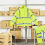 Enhance visibility in high-risk environments with this reflective rain jacket. The Be Safe High-Visibility Reflective Rain Jacket - Lime, Plastic, Waterproof, Windproof, 24.02 inches x 0.39 inches x 30 inches, features high-visibility stripes that significantly enhance safety during busy operations. This waterproof safety jacket is crafted from durable plastic and includes adjustable sleeve openings to ensure a comfortable fit for long shifts, making it an essential piece of hi-vis rainwear. With a detachable hoodie, this jacket offers adaptability in varying weather conditions, providing reliable protection against unexpected showers. Additionally, its 100 percent waterproof design with stitched and taped seams guarantees dryness, while the breathable material offers comfort even on hot summer days. Sold in a 1 count box.