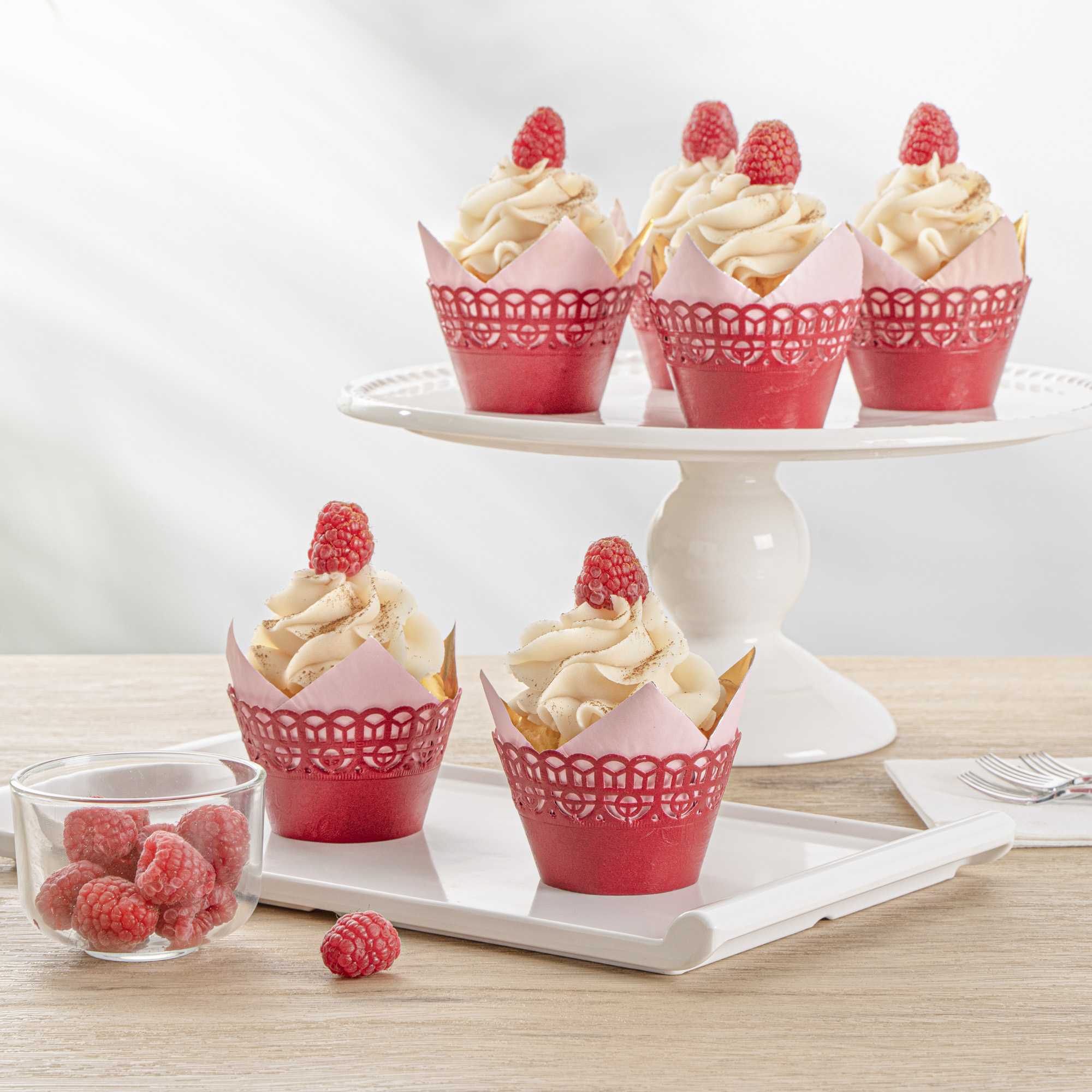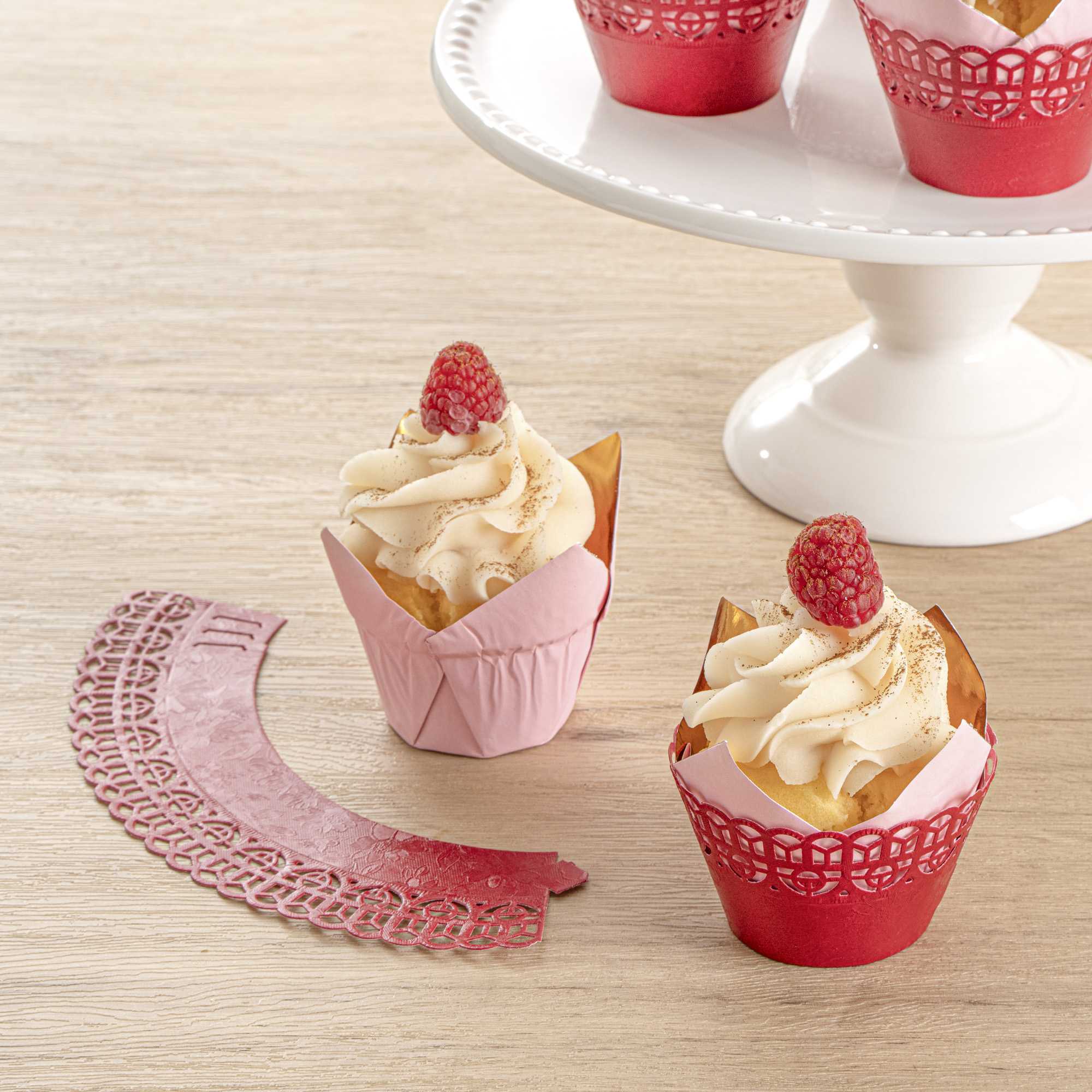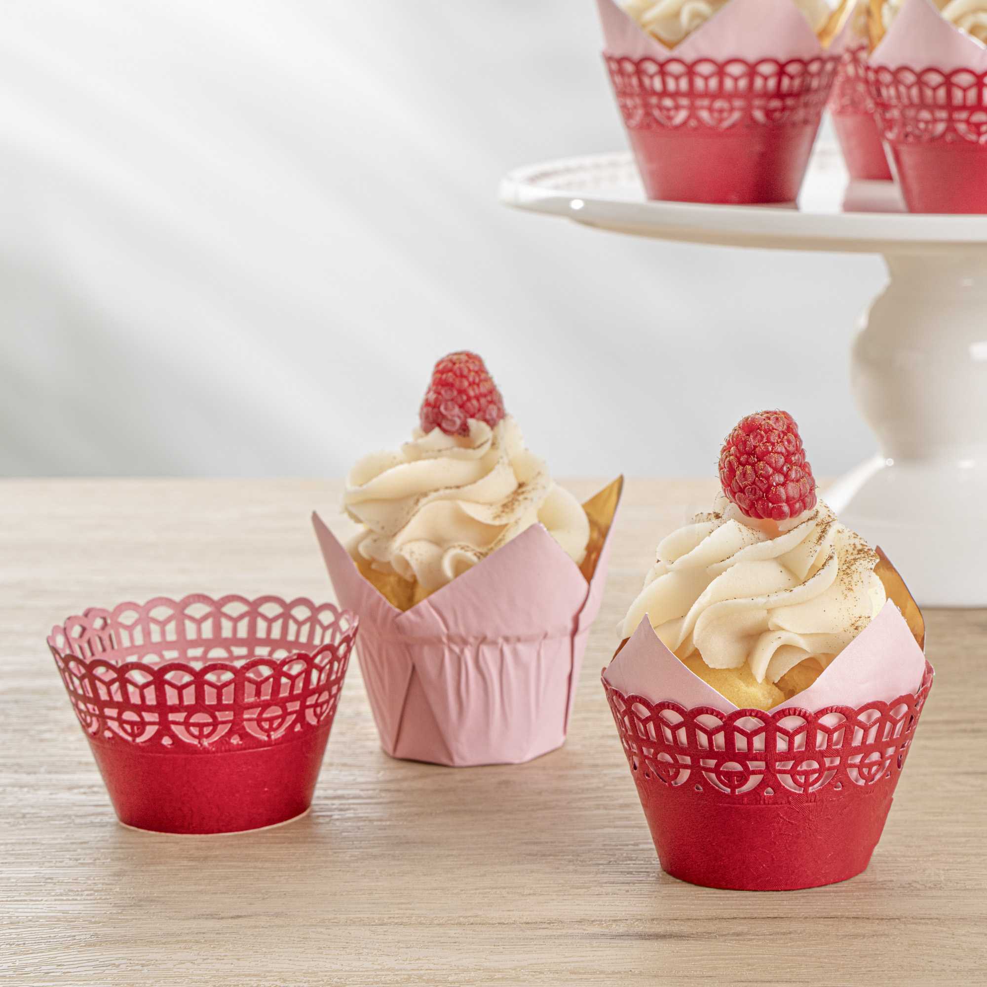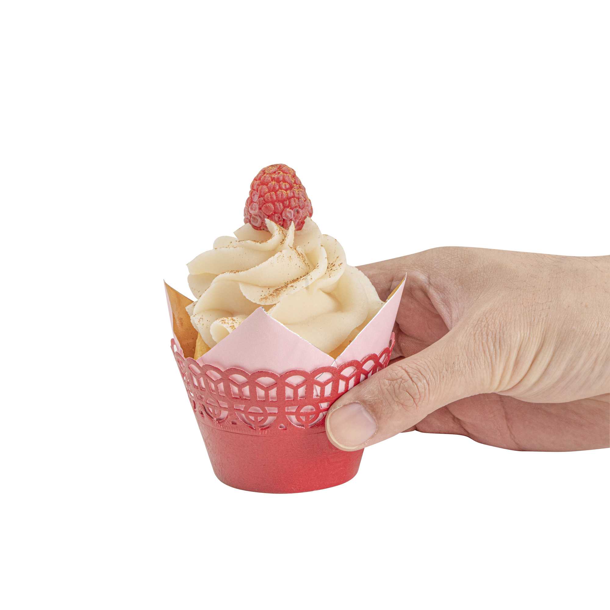 - Cut-out lace pattern instantly dresses up your cupcakes