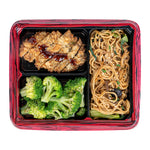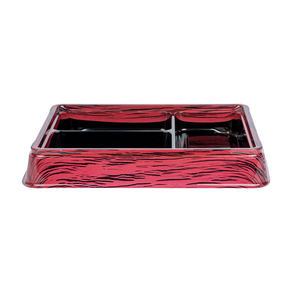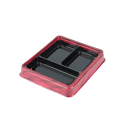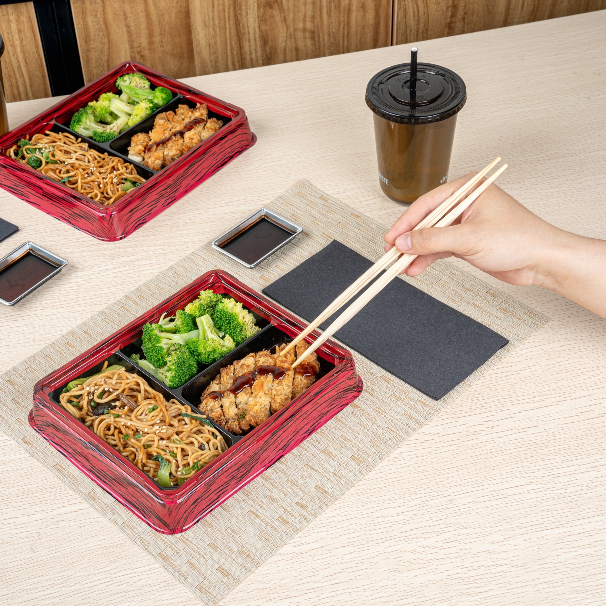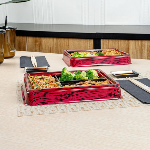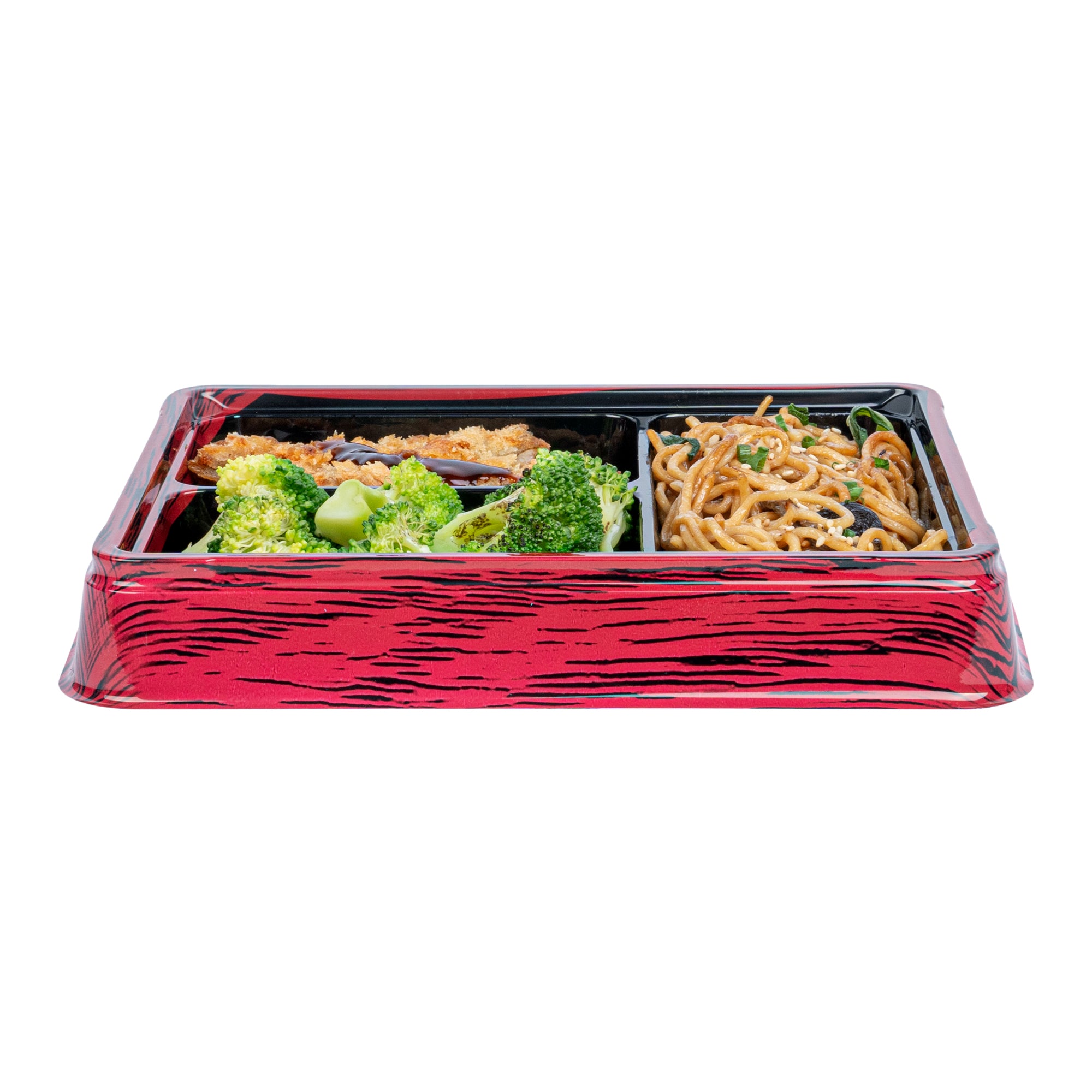 16 OZ RECTANGLE RED AND BLACK PLASTIC BENTO BOX - 3 COMPARTMENTS