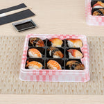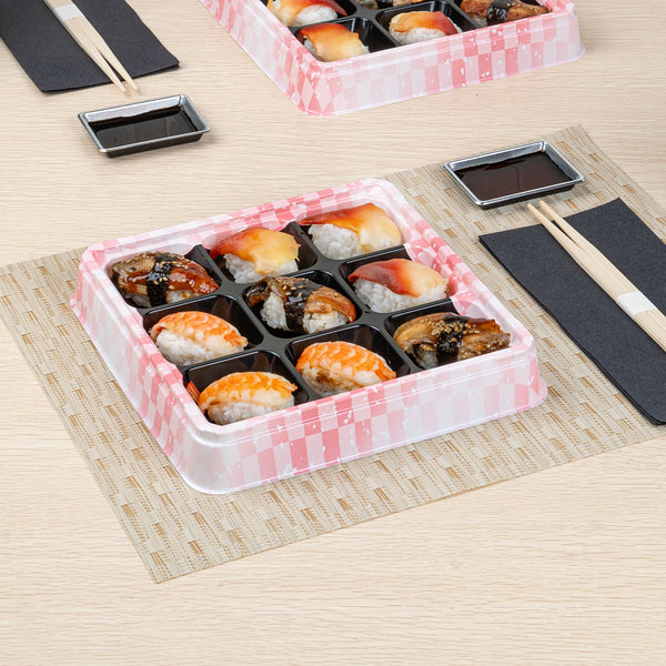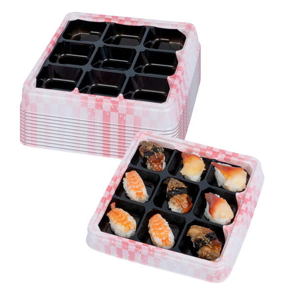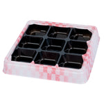 17 OZ SQUARE PINK AND BLACK PLASTIC BENTO BOX - 9 COMPARTMENTS