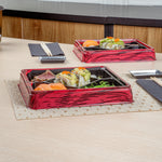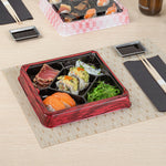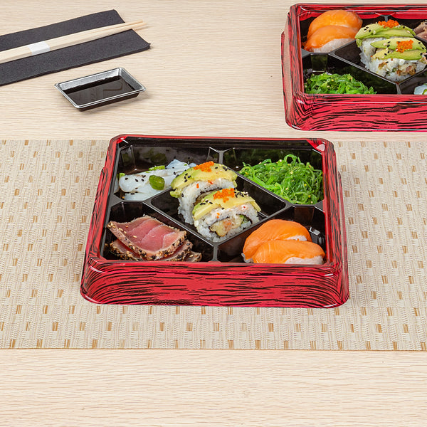 19 OZ SQUARE RED AND BLACK PLASTIC BENTO BOX - 5 COMPARTMENTS