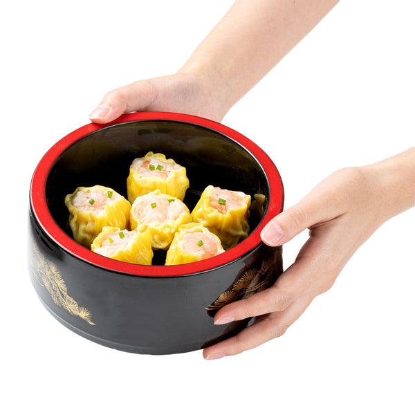 Effortlessly prep meals for the next day with our Bento Tek 25-Ounce Round Black Japanese Style Bento Box. Featuring a lid, this bento lunch box completely covers the opening to keep food from falling out and making a mess. Constructed from ABS plastic, this food prep container can hold hot or cold food so you can pack up a variety of meals. This bento box container has a lacquered interior and is greaseproof to ensure sauces or dressings do not seep through. For a simple and time-saving cleaning process, this meal prep container can be dishwashed. With a black finish and beautiful branch image, this bento box container is sure to match your lunch bags. Containing up to 25 ounces, this meal prep container measures 6.5 inches long by 3.25 inches wide. Sold in a 1 count box.