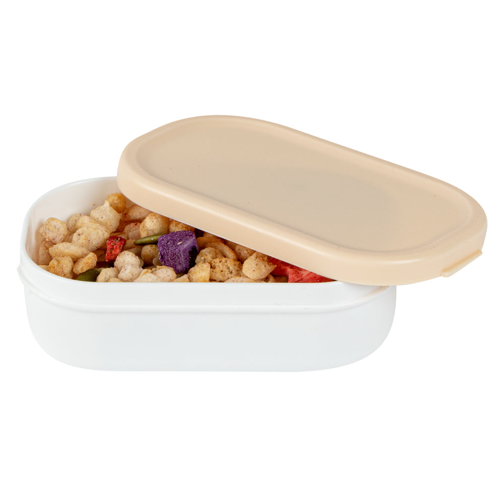 3 OZ WHITE BUDDHA BOX SNACK / SAUCE CONTAINER - WITH BEIGE LID