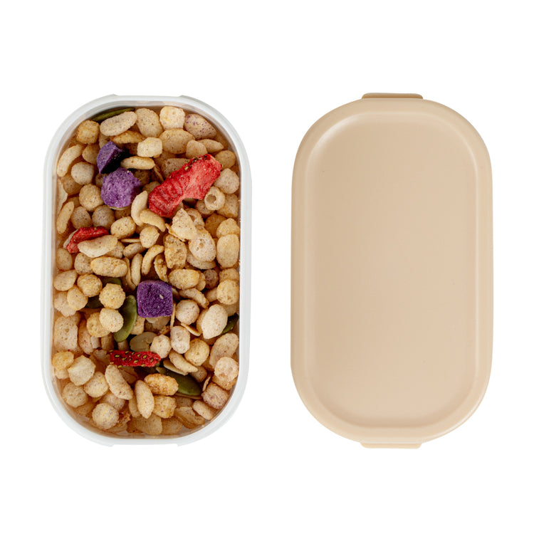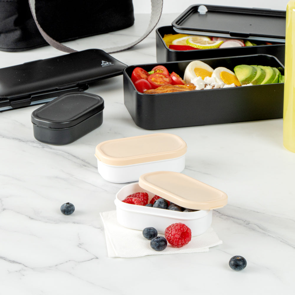 Seal your sauces in our Bento Tek 3-ounce White Buddha Box Snack / Sauce Containers. With a white bowl and beige lid, these reusable sauce cups create a nude look that matches well with our Buddha Box Lunch Containers or a beige lunch bag. For easily heating up dipping sauces, these lunch box sauce containers are microwavable. Featuring a PP plastic construction, these lunch sauce containers are dishwashable to reduce the number of dishes you have to hand wash. For storing up to 3 ounces of baby food, these sauce cups measure 3.75 inches long by 2.25 inches wide by 1.25 inches tall. Sold in a 4 count box.