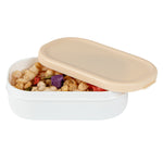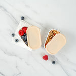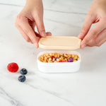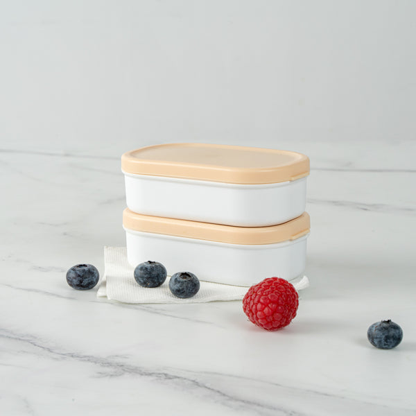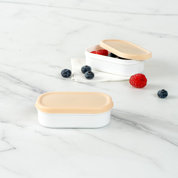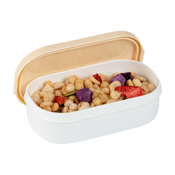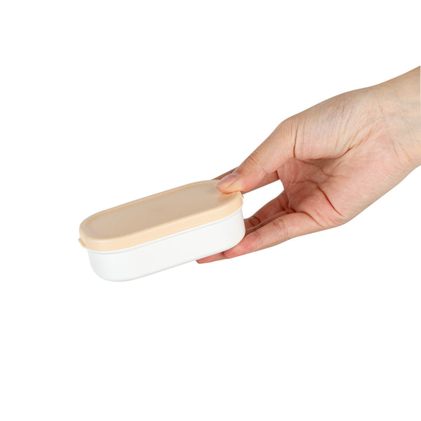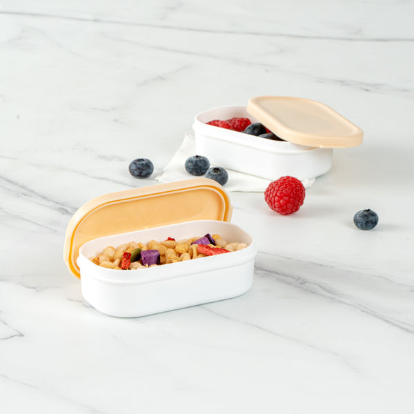 Seal your sauces in our Bento Tek 3-ounce White Buddha Box Snack / Sauce Containers. With a white bowl and beige lid, these reusable sauce cups create a nude look that matches well with our Buddha Box Lunch Containers or a beige lunch bag. For easily heating up dipping sauces, these lunch box sauce containers are microwavable. Featuring a PP plastic construction, these lunch sauce containers are dishwashable to reduce the number of dishes you have to hand wash. For storing up to 3 ounces of baby food, these sauce cups measure 3.75 inches long by 2.25 inches wide by 1.25 inches tall. Sold in a 4 count box.