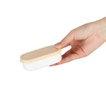 3 OZ WHITE BUDDHA BOX SNACK / SAUCE CONTAINER - WITH BEIGE LID