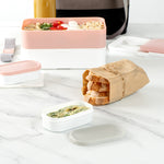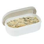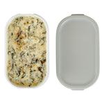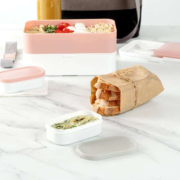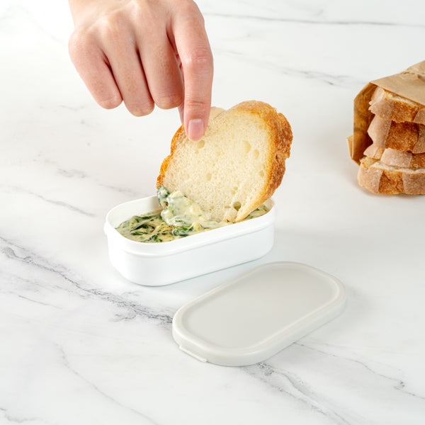 Combine snacks with meals by using our Bento Tek 3-ounce White Buddha Box Snack / Sauce Containers. With a white bowl and gray lid, these sauce cups go great with our Buddha Box Lunch Containers for taking meals and snacks on the go. To keep your hot fudge hot, these condiment cups with lids are microwavable. Made from PP plastic, these condiment cups with lids are dishwashable and reusable to shorten your cleanup after enjoying meals. These small snack containers measure 3.75 inches long by 2.25 inches wide by 1.25 inches tall and hold up to 2.6 ounces of desserts. Sold in a 4 count box.