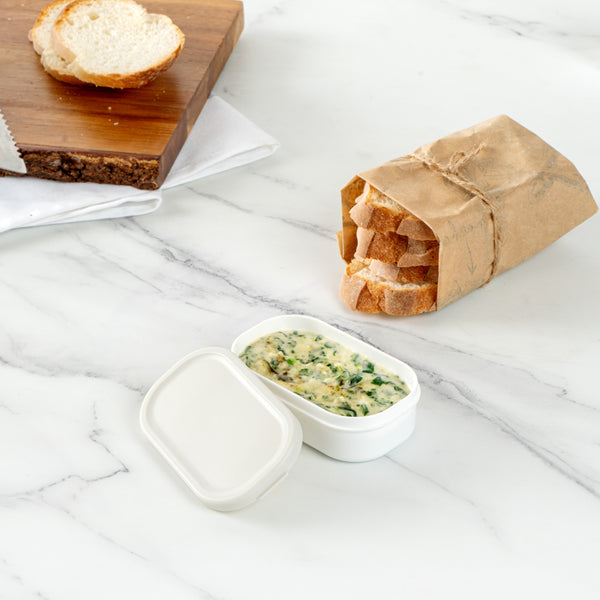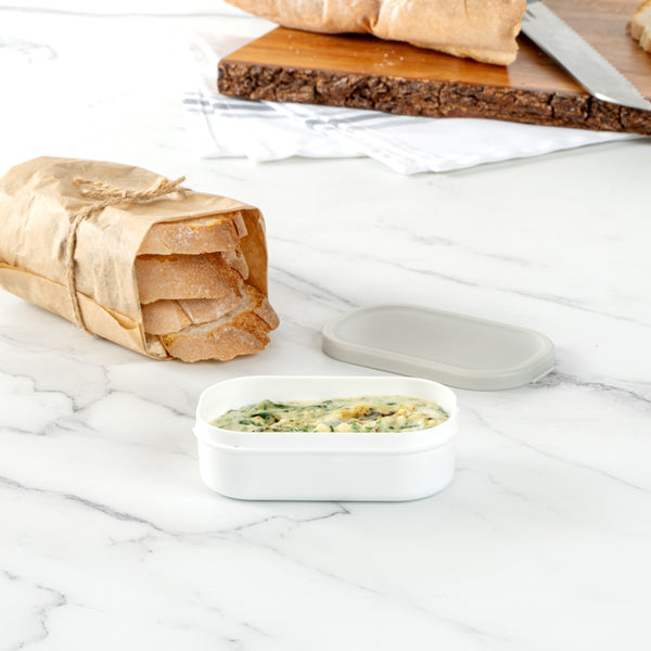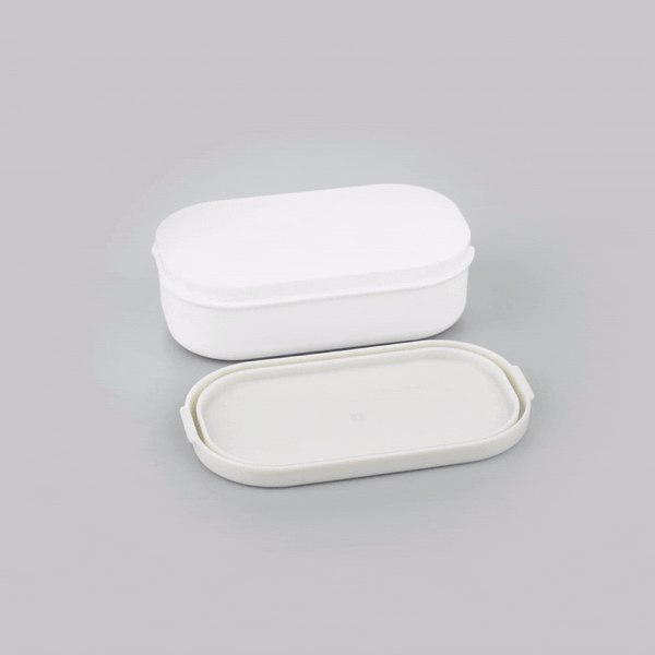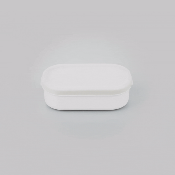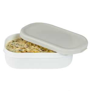 3 OZ WHITE BUDDHA BOX SNACK / SAUCE CONTAINER - WITH GRAY LID