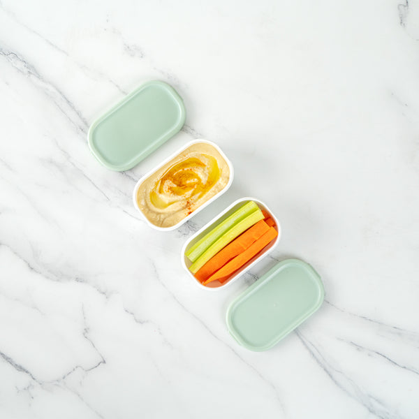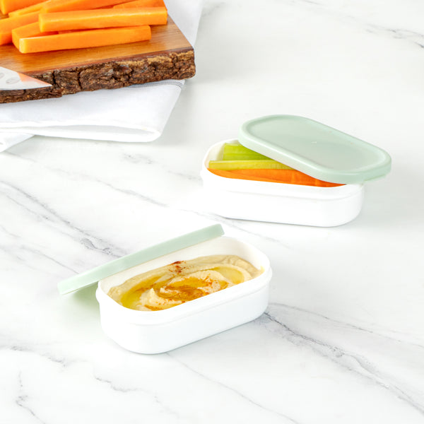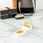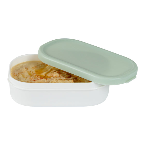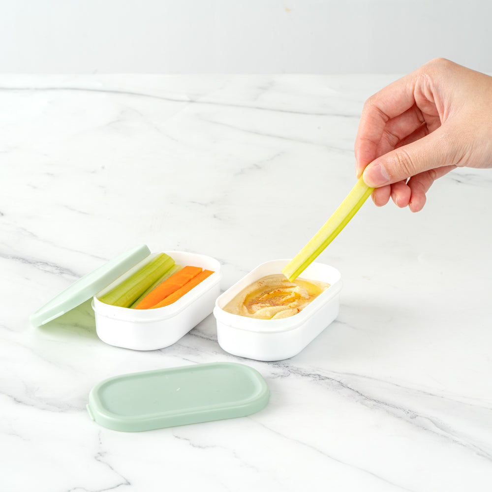 Add a side to your meals with our Bento Tek 3-ounce White Buddha Box Snack / Sauce Container. Designed with a white bowl and green lid, these salad dressing containers can be combined with our Buddha Box Lunch Containers to stylishly package lunch. To ensure your snacks are warm, these condiment containers are microwavable. Crafted from PP plastic, these sauce cups are strong and sturdy, so you can put them in the dishwasher for a quick cleanup. Containing up to 3 ounces of jello, these sauce containers with lids measure 3.75 inches long by 2.25 inches wide by 1.25 inches tall. Sold in a 4 count box.