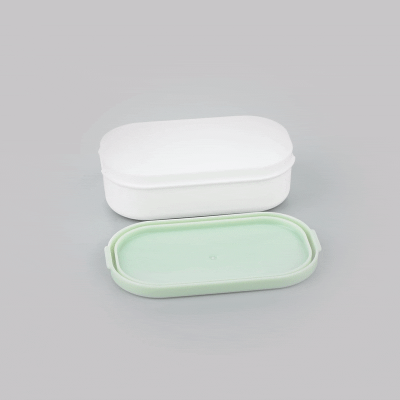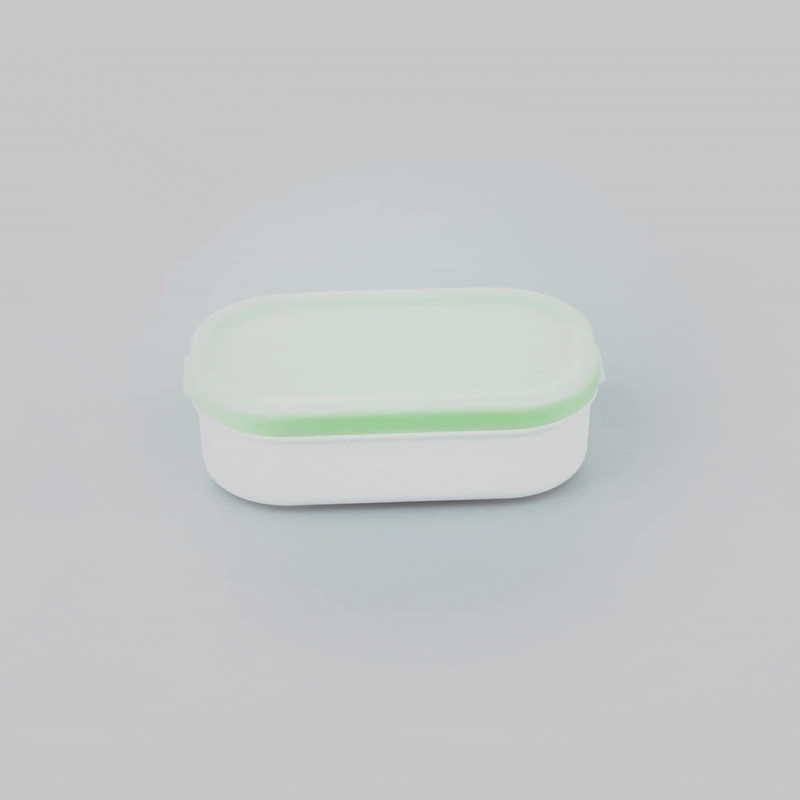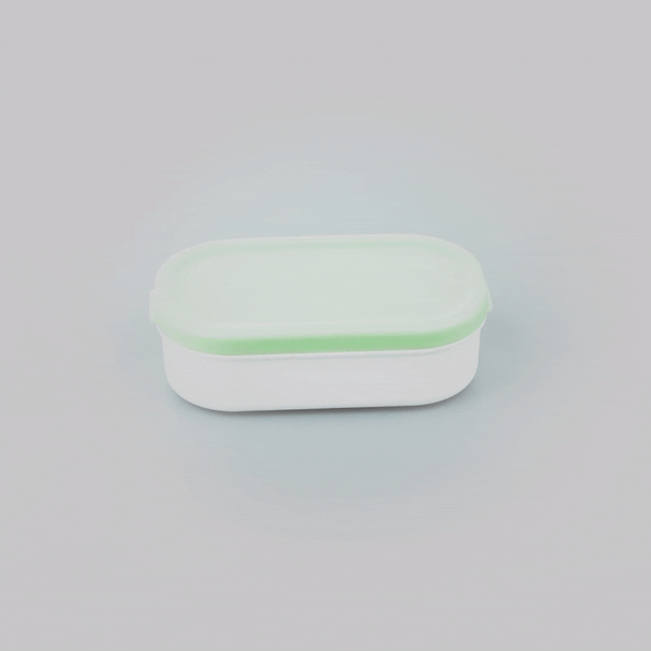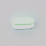 3 OZ WHITE BUDDHA BOX SNACK / SAUCE CONTAINER - WITH GREEN LID