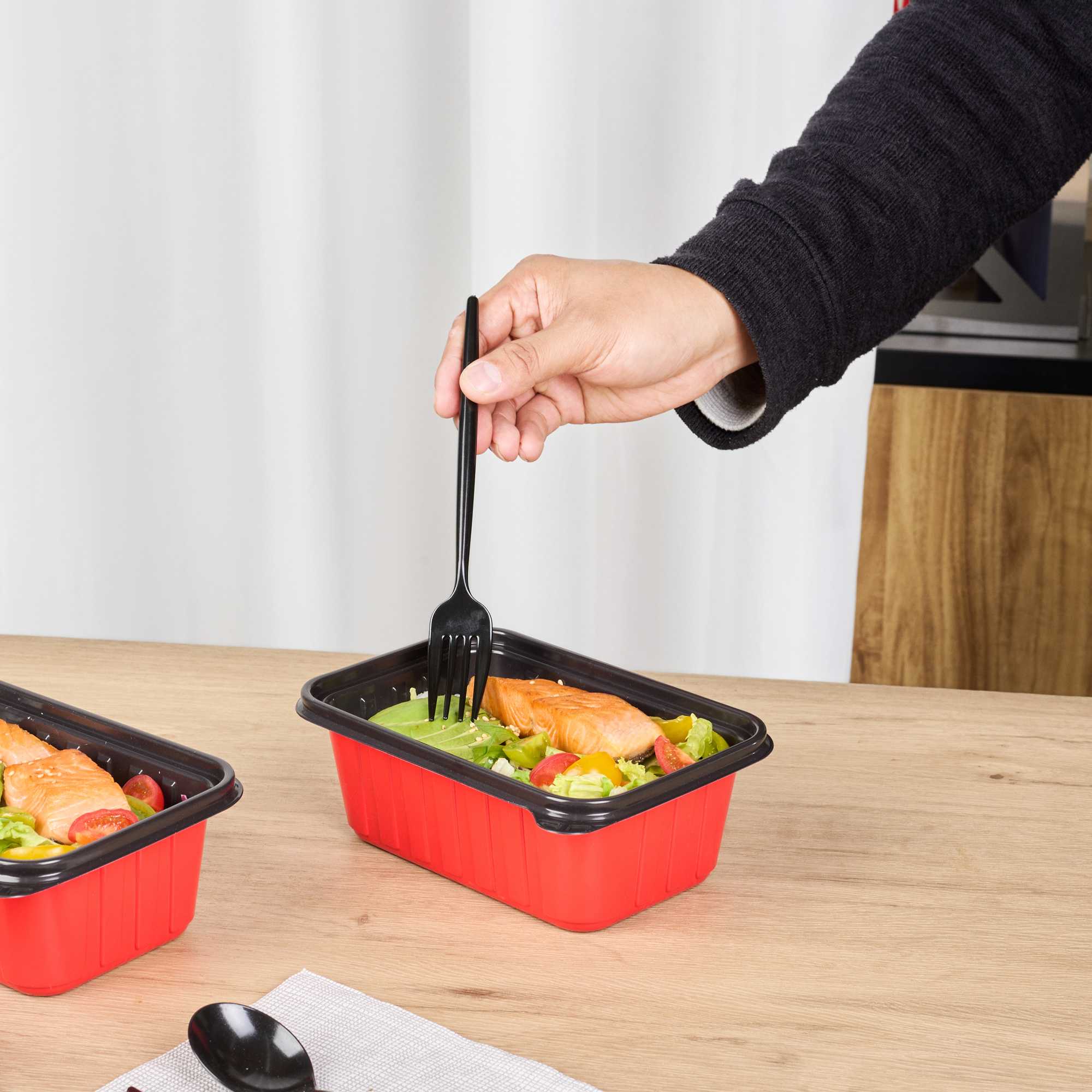 - Two-color design boosts brand visibility for take out orders