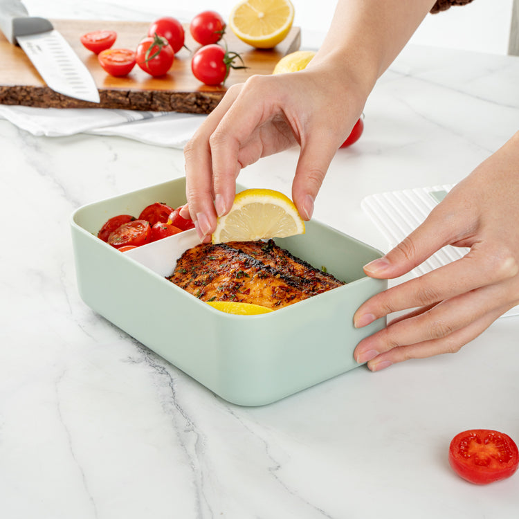 These reusable bento boxes are available in multiple color combinations to match your lunch bags or personal taste. Enjoy your breakfast, lunch, or dinner on the go with style!