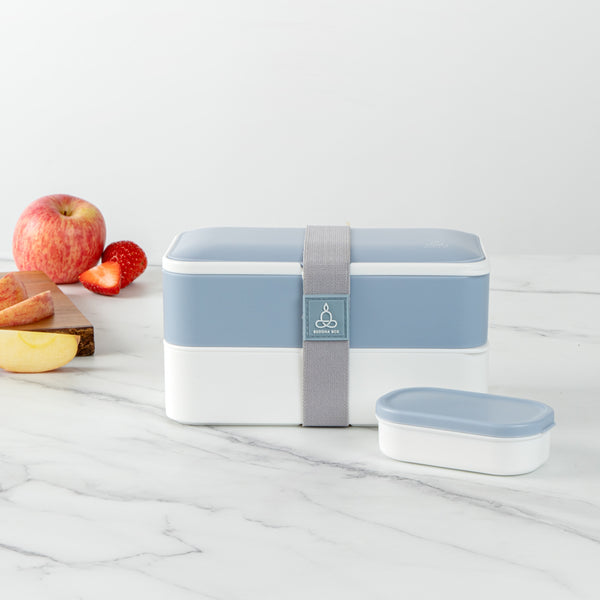 41 OZ BLUE / WHITE BUDDHA BOX ALL-IN-ONE LUNCH BOX - UTENSILS