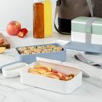 These reusable bento boxes are available in multiple color combinations to match your lunch bags or personal taste. Enjoy your breakfast, lunch, or dinner on the go with style!