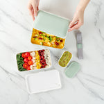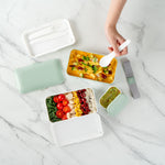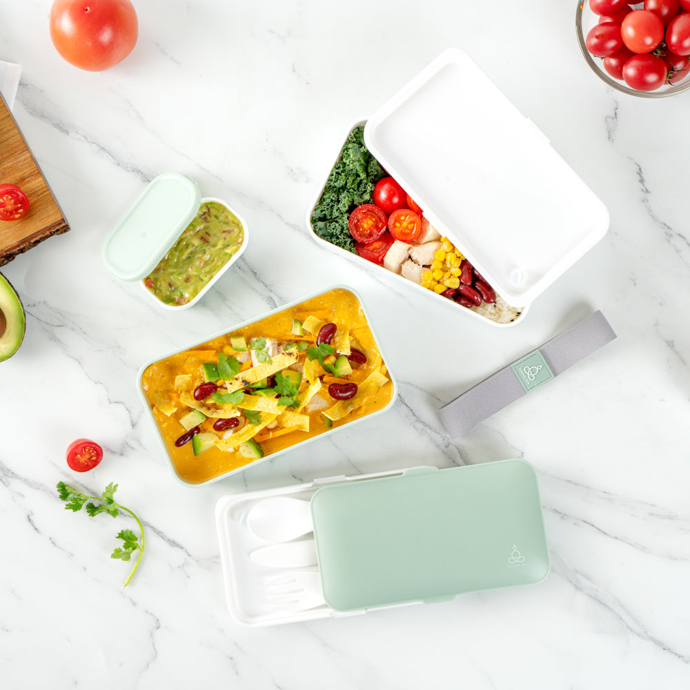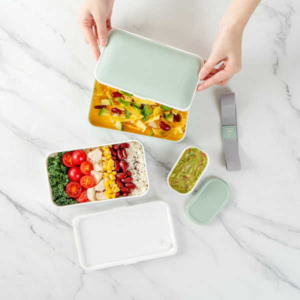 These reusable bento boxes are available in multiple color combinations to match your lunch bags or personal taste. Enjoy your breakfast, lunch, or dinner on the go with style!