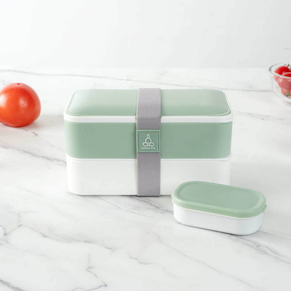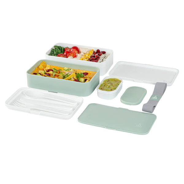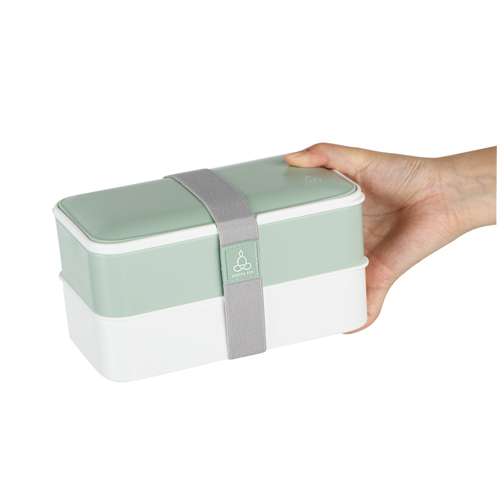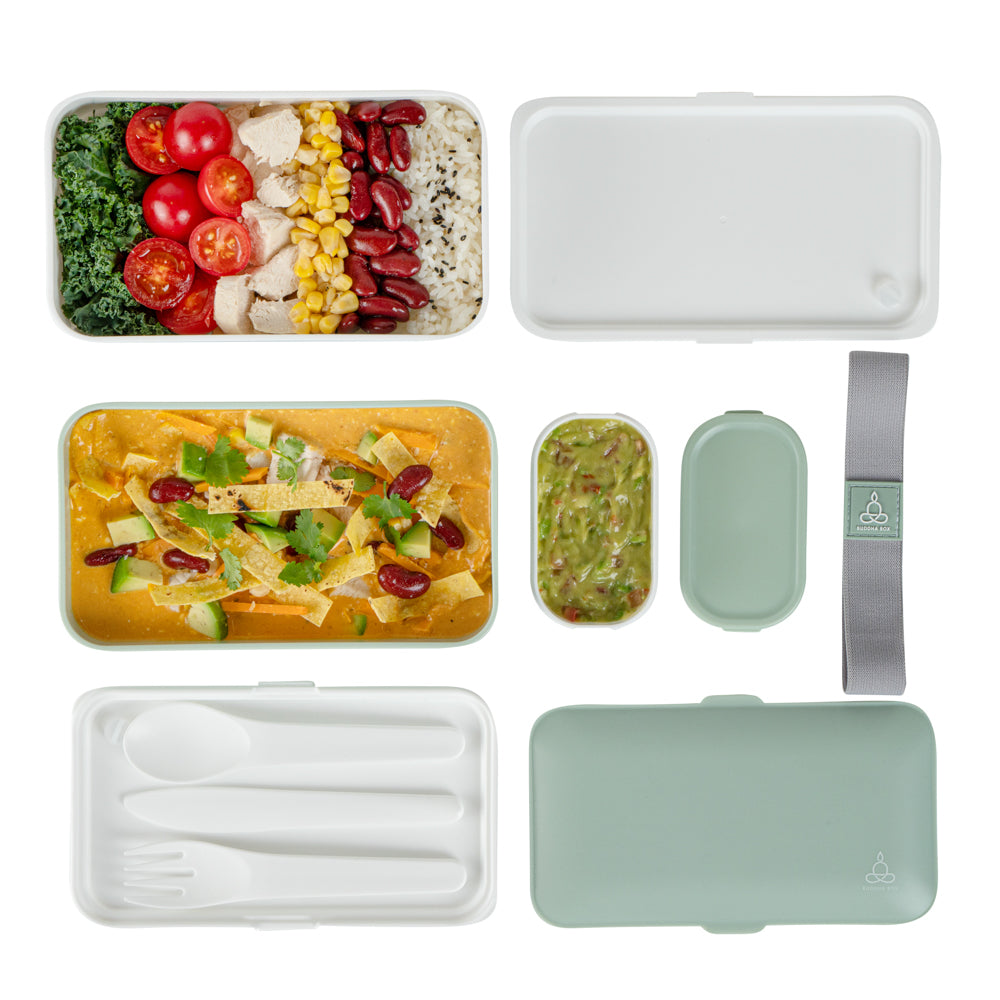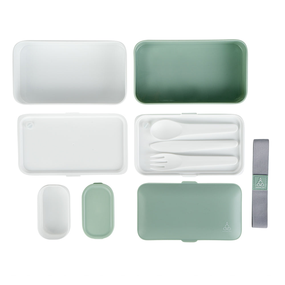 41 OZ GREEN / WHITE BUDDHA BOX ALL-IN-ONE LUNCH BOX - UTENSILS