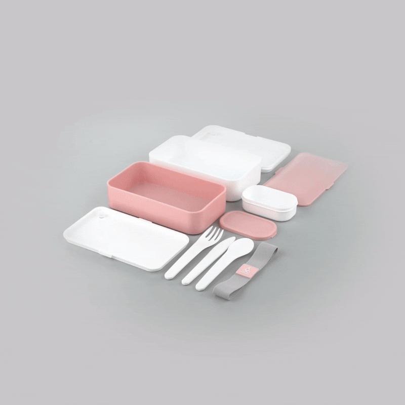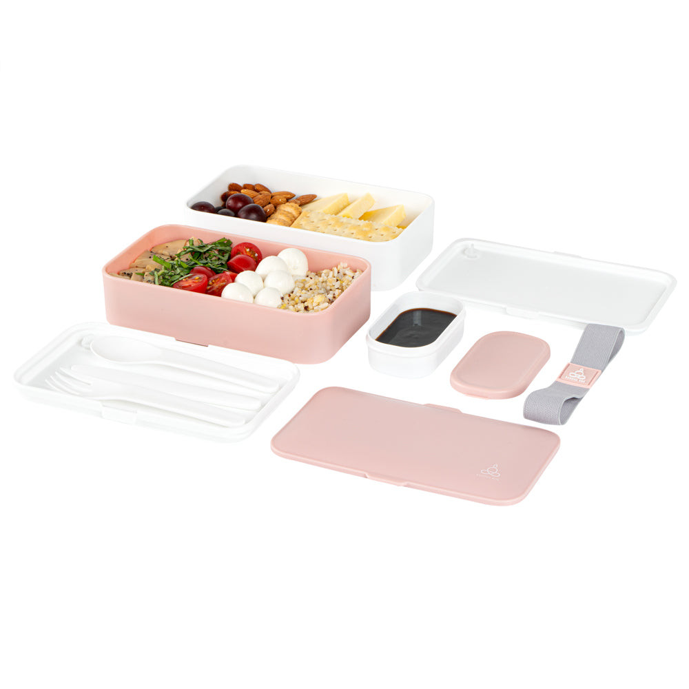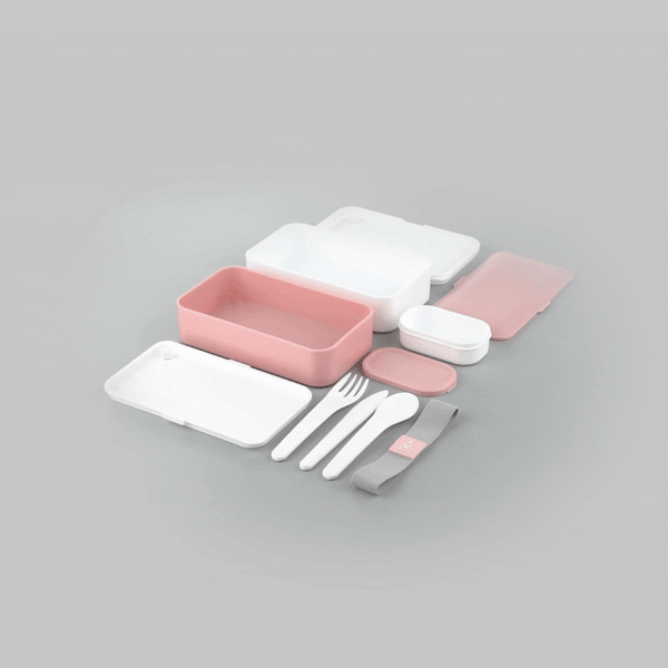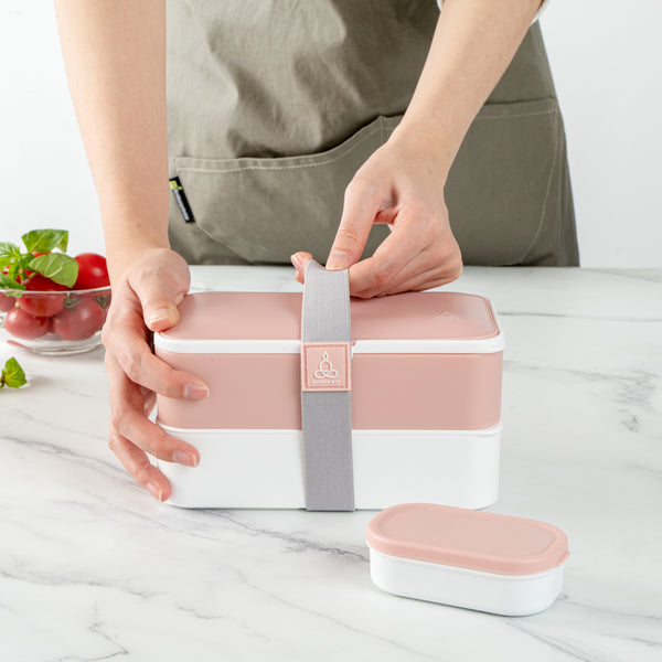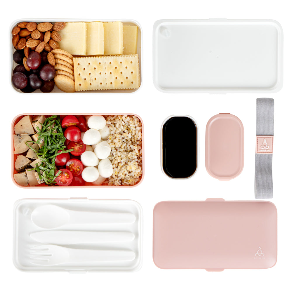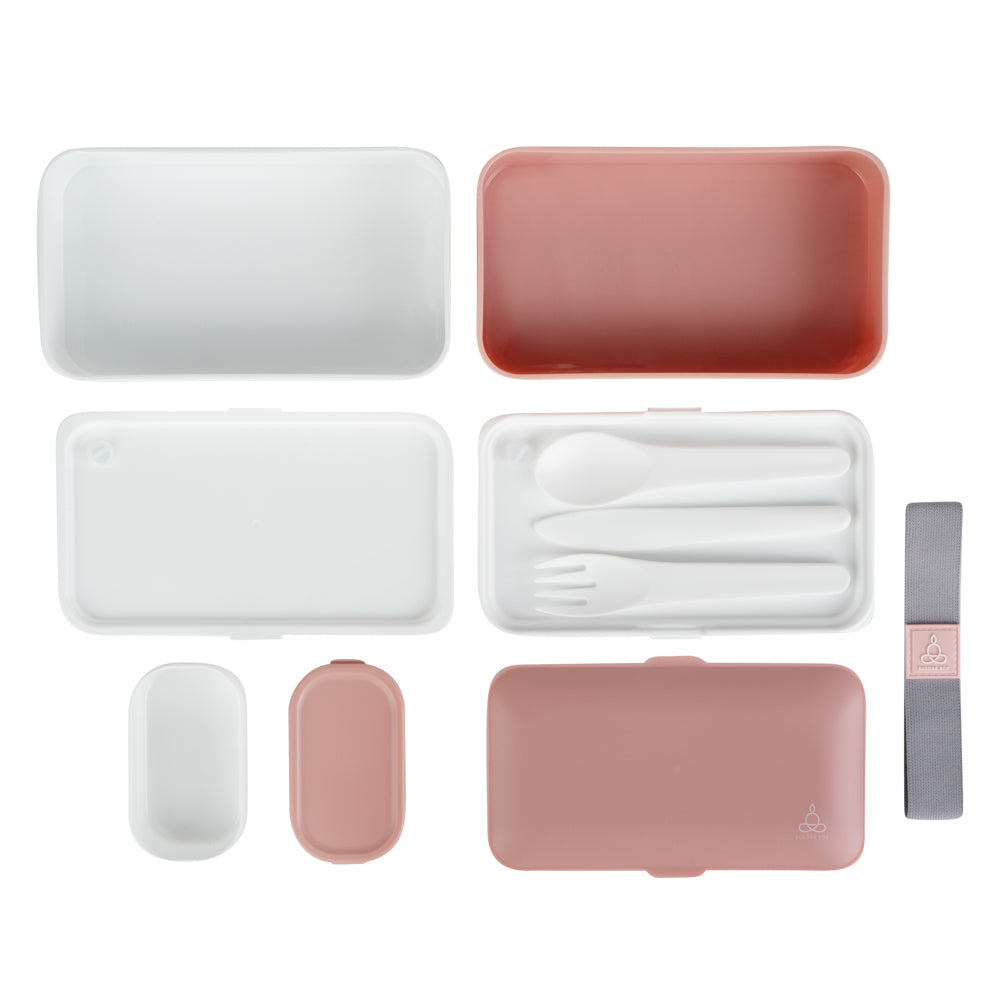41 OZ PINK / WHITE BUDDHA BOX ALL-IN-ONE LUNCH BOX - UTENSILS