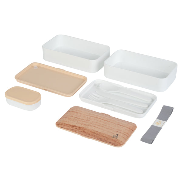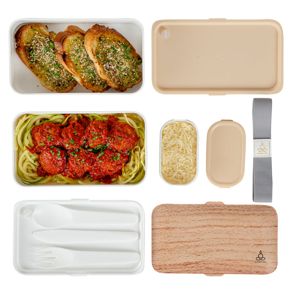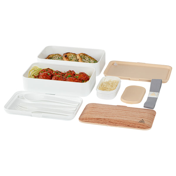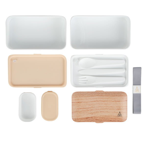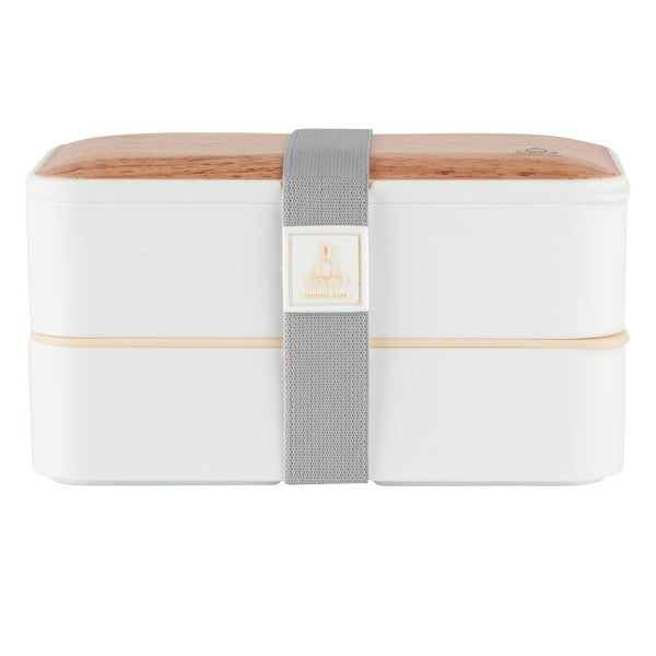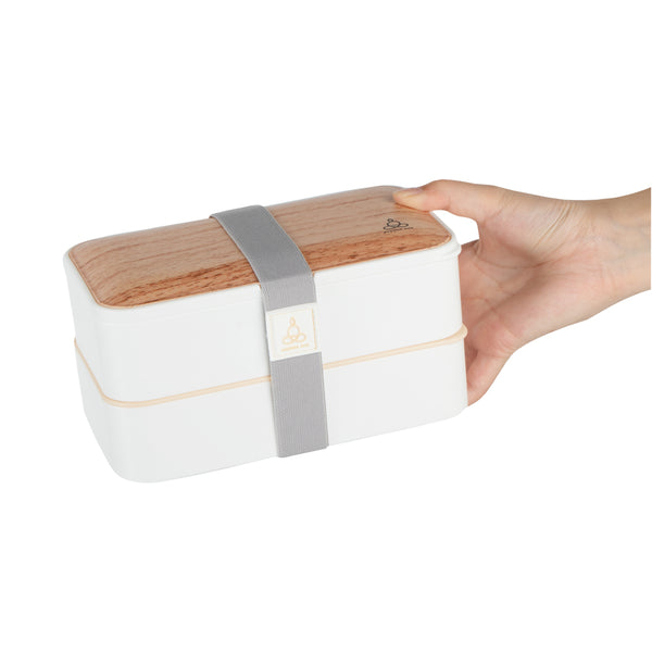 41 OZ WOOD GRAIN / WHITE BUDDHA BOX ALL-IN-ONE LUNCH BOX - UTENSILS