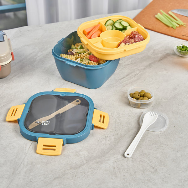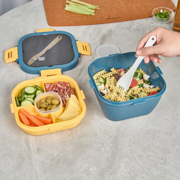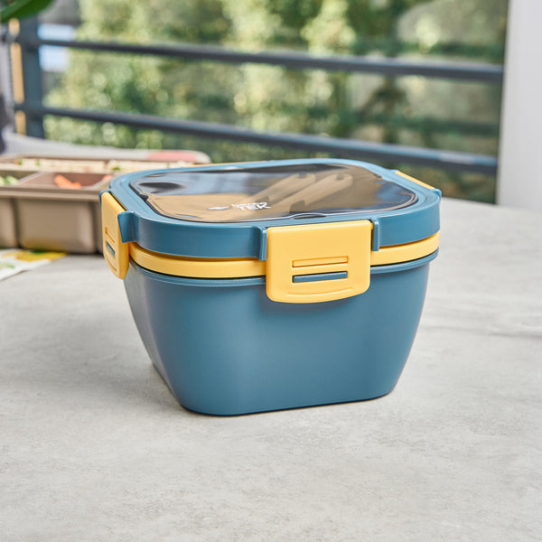 58 OZ BLUE AND YELLOW LUNCH BOX- BPA-FREE, MICROWAVE-SAFE