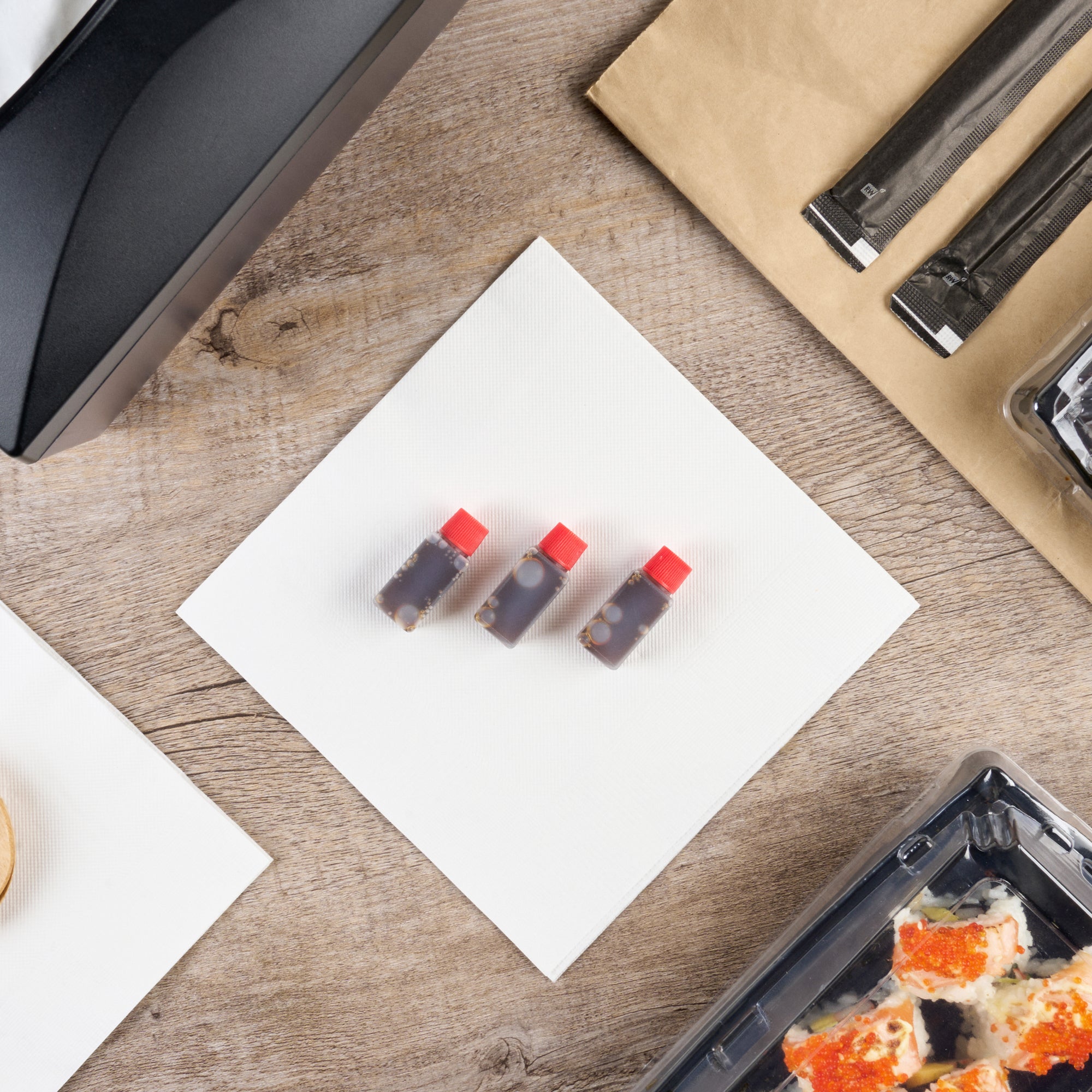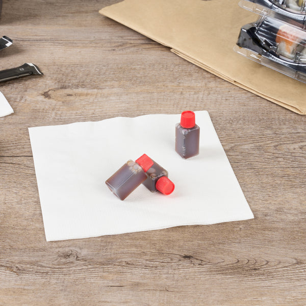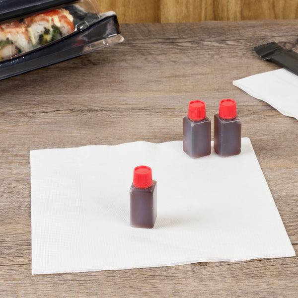 Elevate your condiment presentation with our Bento Tek 6-milliliter Clear Plastic Soy Sauce Bottles. Featuring a red cap, these mini soy sauce bottles form a secure seal to prevent leaks and spills during transit. The red finish of the twist-on caps adds a pop of color, making these small soy sauce bottles easily recognizable among other condiments. Designed with nozzles for controlled pouring, these empty soy sauce bottles ensure users dispense just the right amount of sauce without waste. The squeezable body of these plastic soy sauce bottles further enhances precision and allows accurate dispensing every time. Perfectly compact, these tiny dropper bottles fit comfortably in take out packages without taking up too much space. The clear finish of these bottles showcases their contents, making them ideal for foodservice operations. These disposable plastic bottles can be discarded after use for an easy cleanup. With a capacity of 6 milliliters, these soy sauce bottles measure 1.69 inches in height. Sold in a 100 count box.
