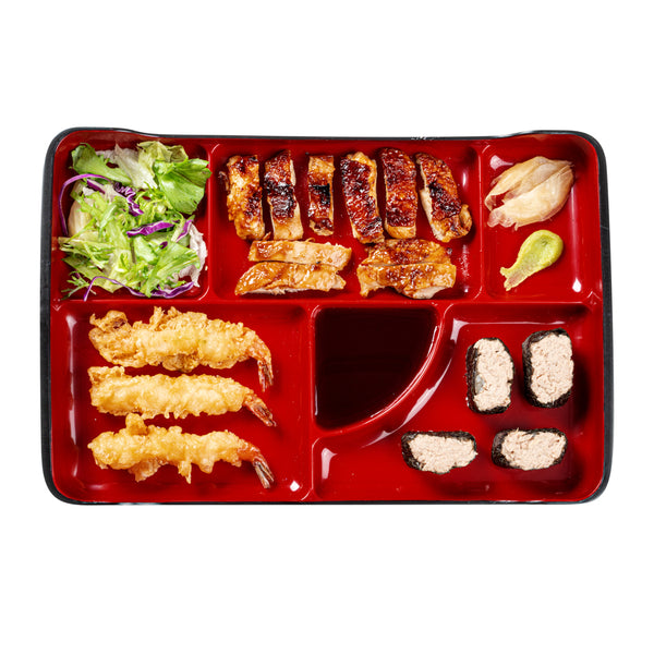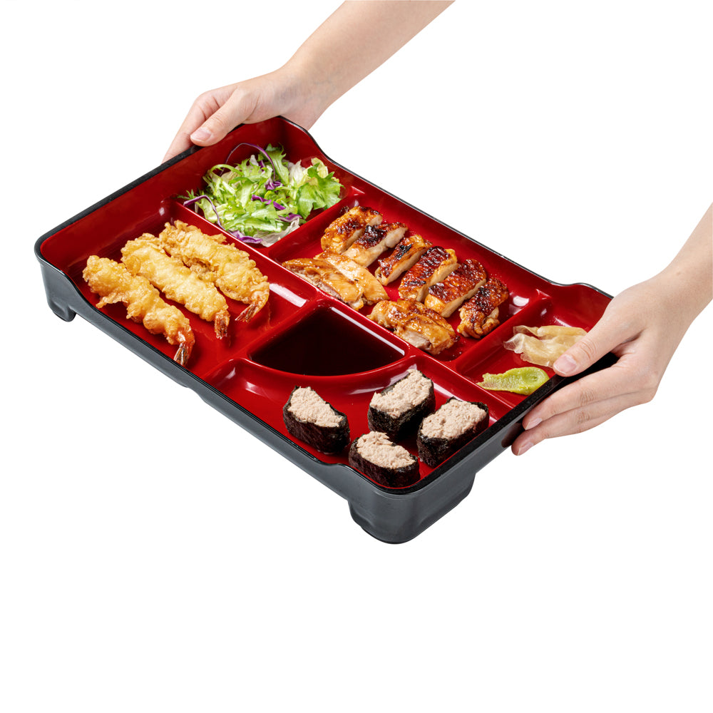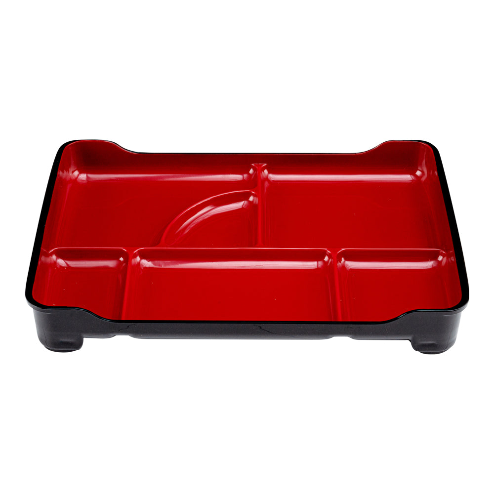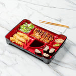 BLACK AND RED JAPANESE STYLE BENTO PLATE - 5 COMPARTMENTS