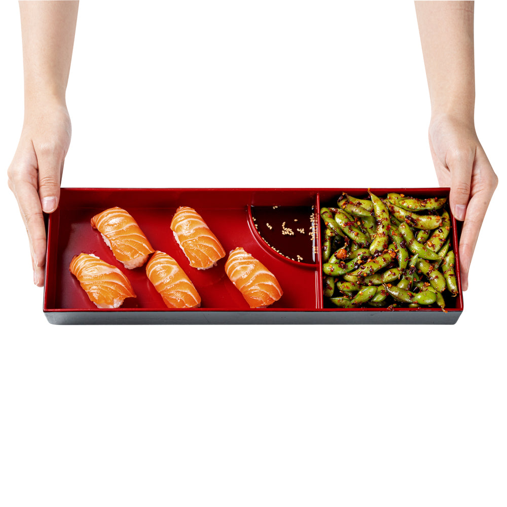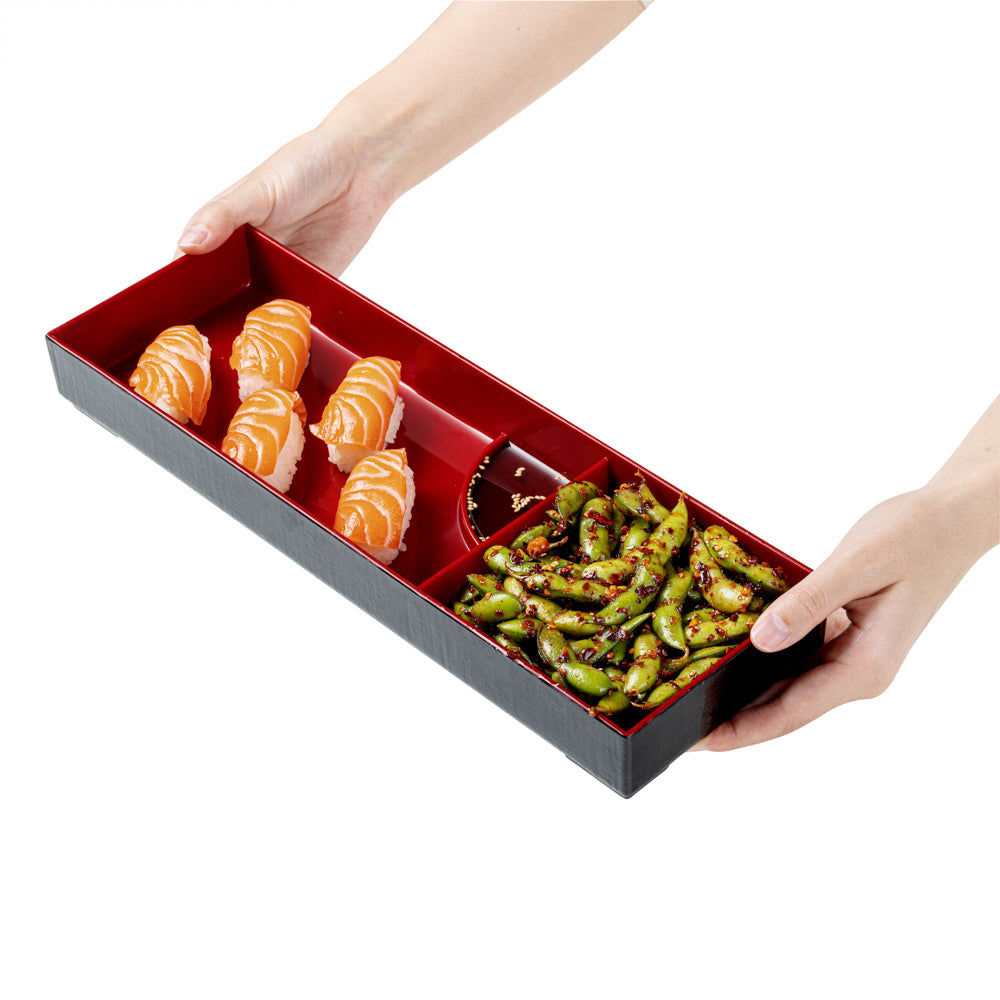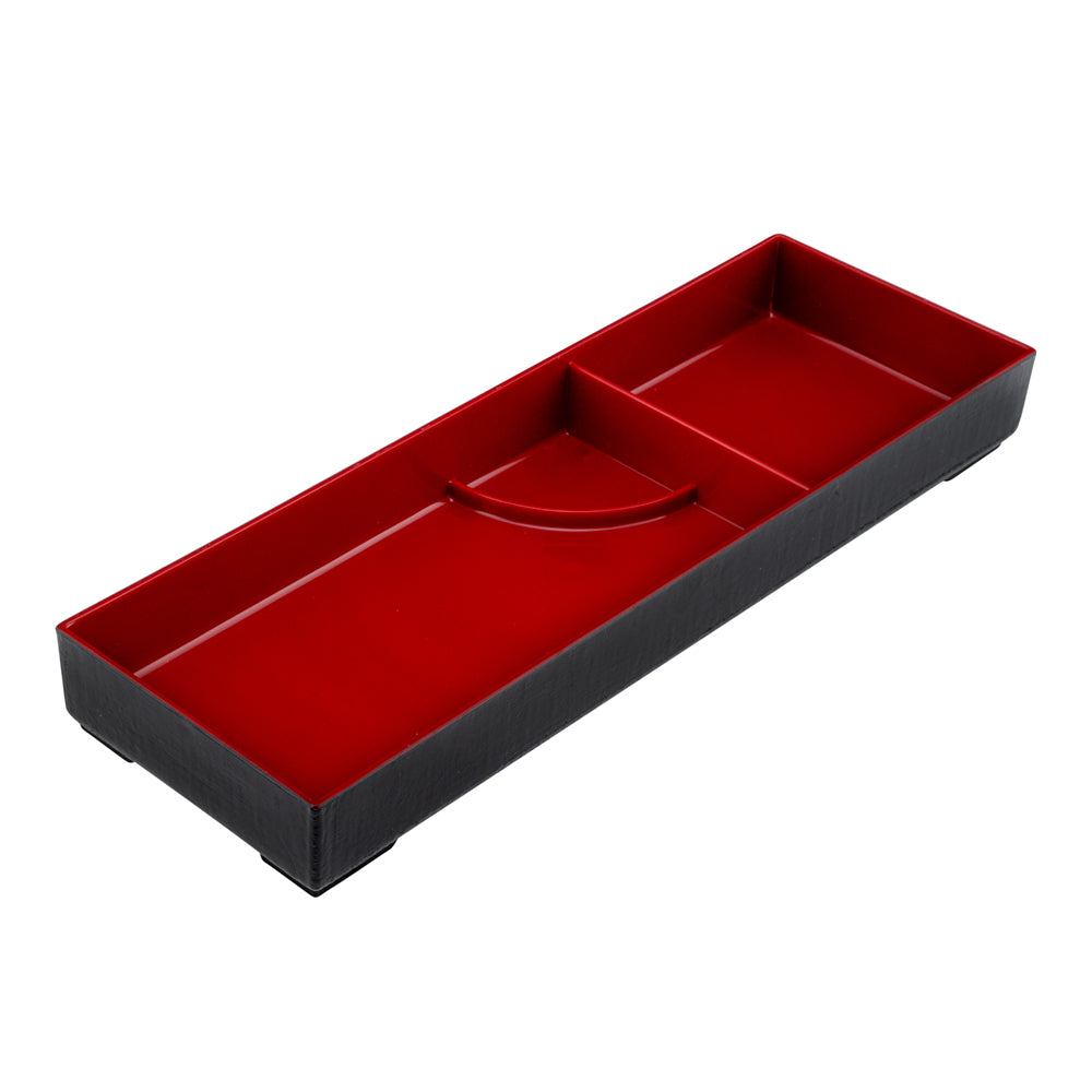BLACK AND RED JAPANESE STYLE BENTO TRAY - 2 COMPARTMENTS