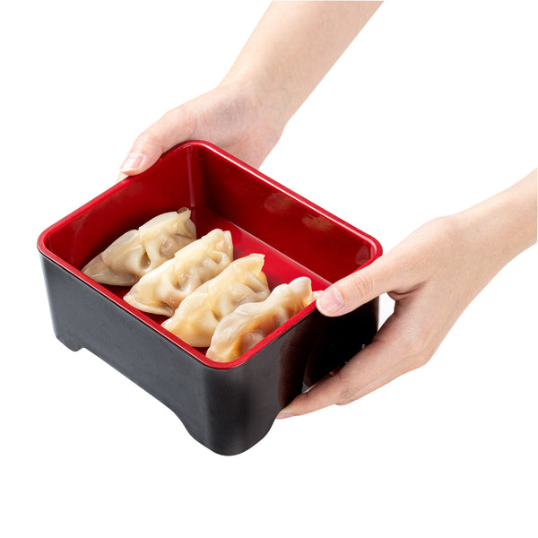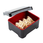 Reuse our Bento Tek Black and Red Japanese Style Unagi Bento Box to take lunches with you every day. The lid of this meal prep container securely fits over the box to ensure style inside and doesn't fall out to create a mess. Made from ABS plastic, this bento box for adults holds hot or cold food for packing desserts or freshly made snacks. With a lacquered interior, this traditional bento box is greaseproof to keep oils and sauces from seeping through the box. For an effortless cleaning process, this hot food container is dishwashable. Featuring a chic black finish and branch image, this plastic bento box allows you to create a stylish meal presentation. This bento box measures 6.5 inches long by 5.75 inches wide by 3.25 inches tall and holds up to 23 ounces. Sold in a 1 count box.
