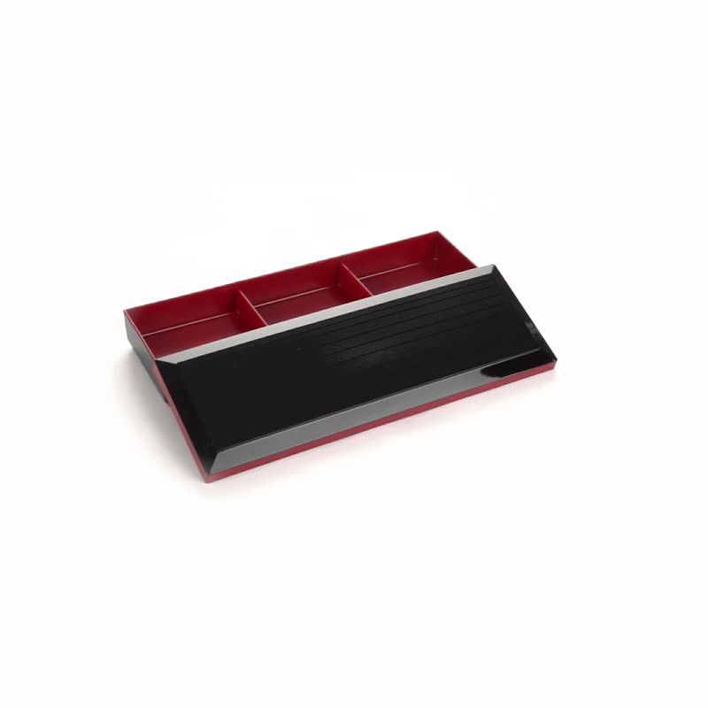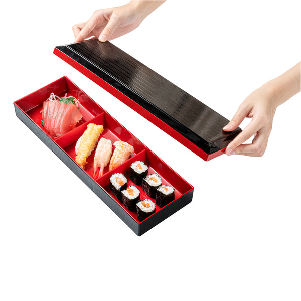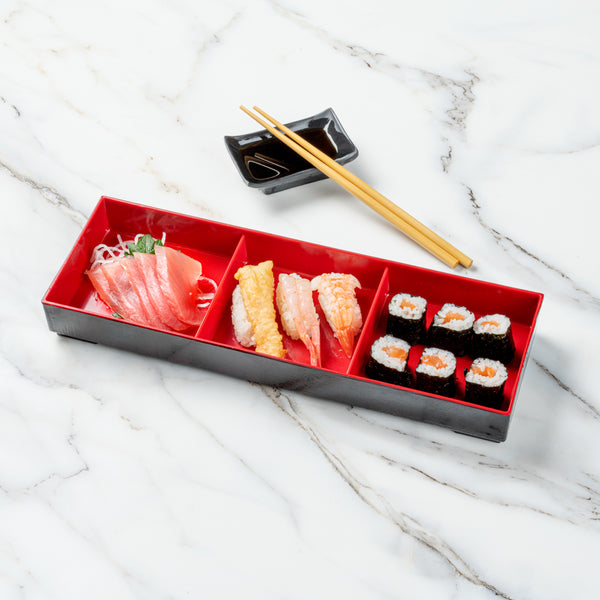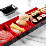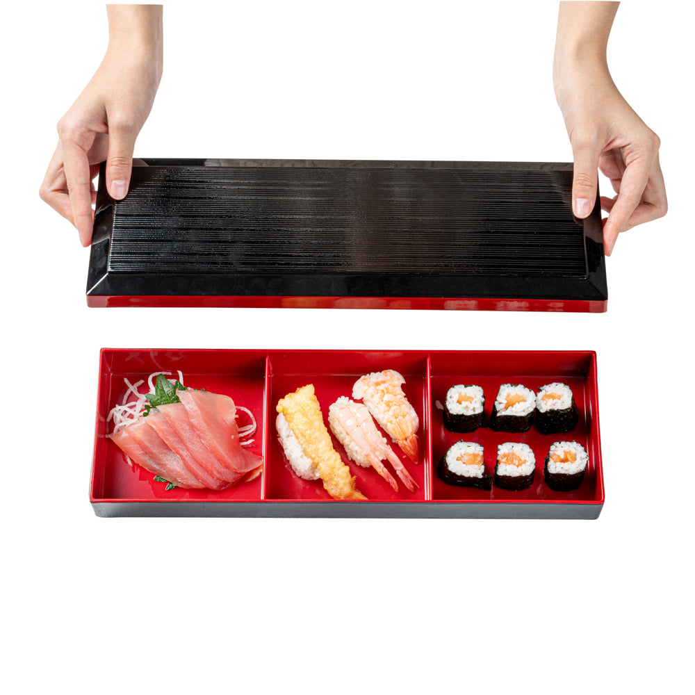 RECTANGLE BLACK AND RED JAPANESE STYLE BENTO BOX - 3 COMPARTMENTS