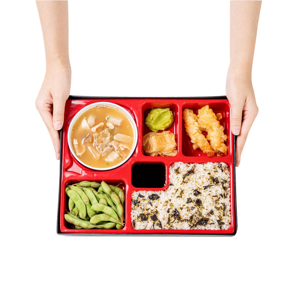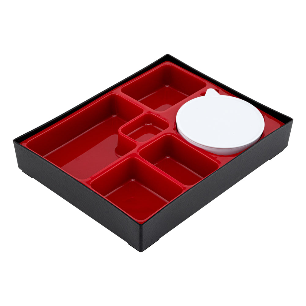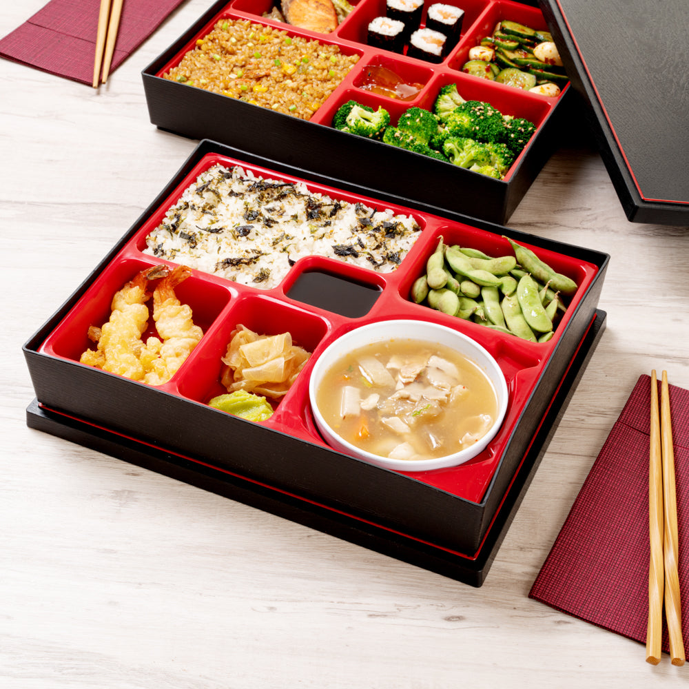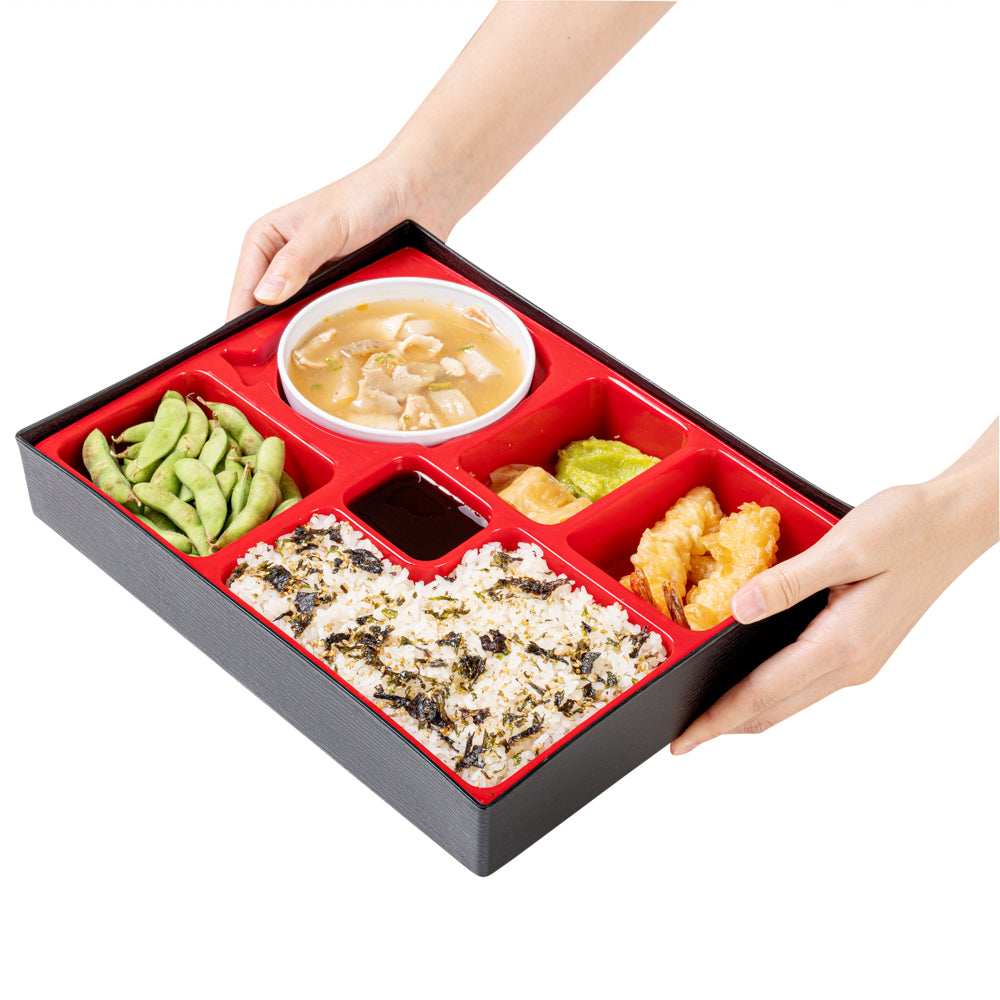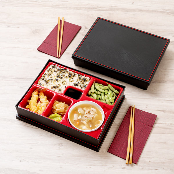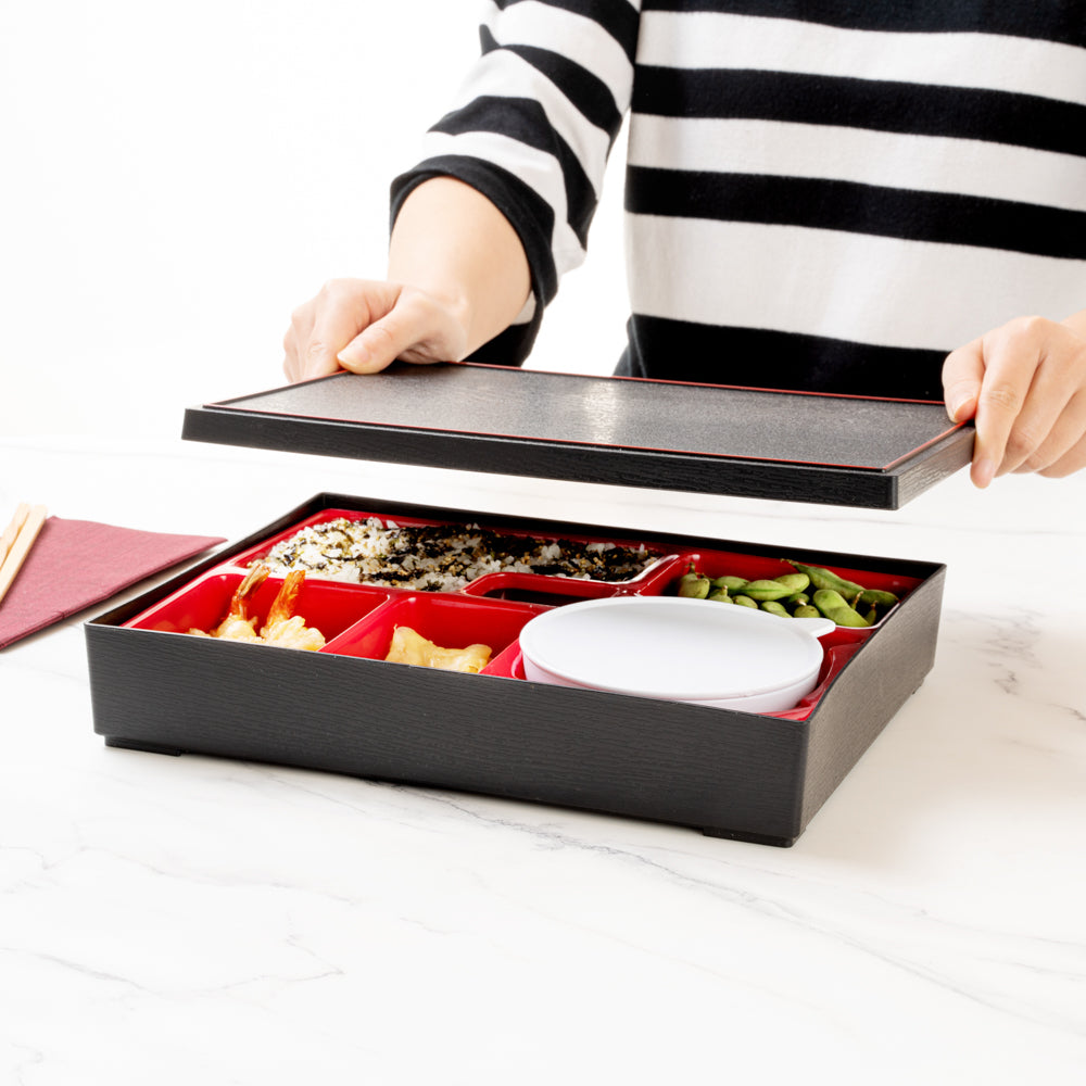 BLACK AND RED LARGE JAPANESE STYLE BENTO BOX - 6 COMPARTMENTS
