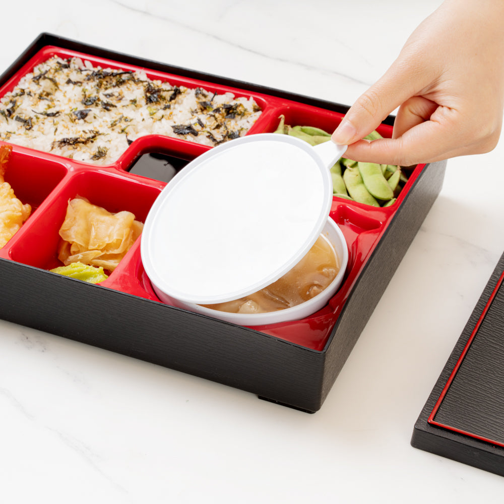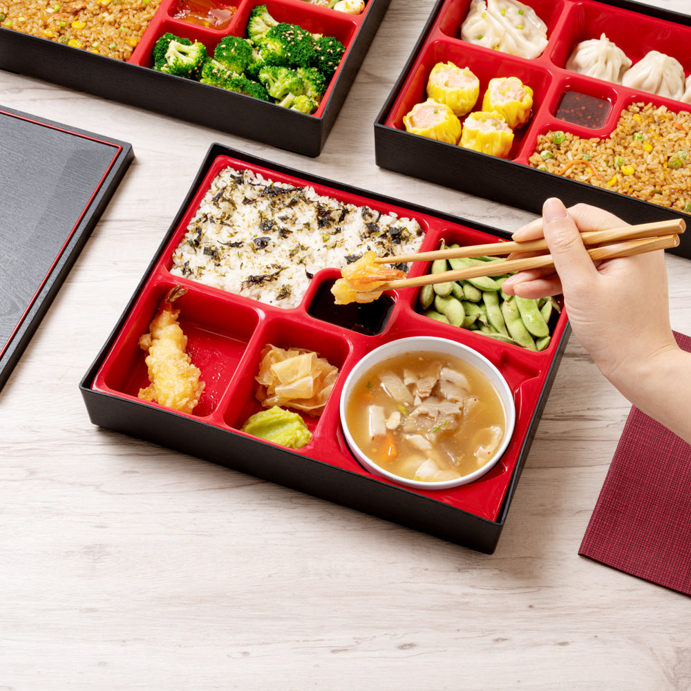 To fit and neatly organize all types of foods, these bento boxes, plates, and trays have compartments of different sizes. Display entrees, sauces, and side dishes in one go!