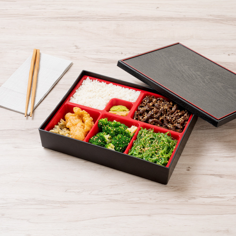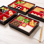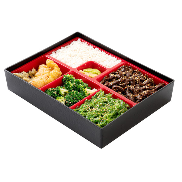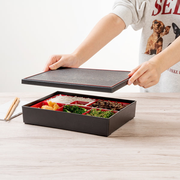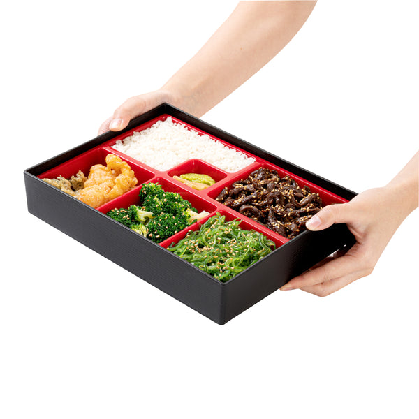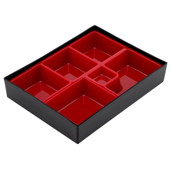 BLACK AND RED SMALL JAPANESE STYLE BENTO BOX - 6 COMPARTMENTS