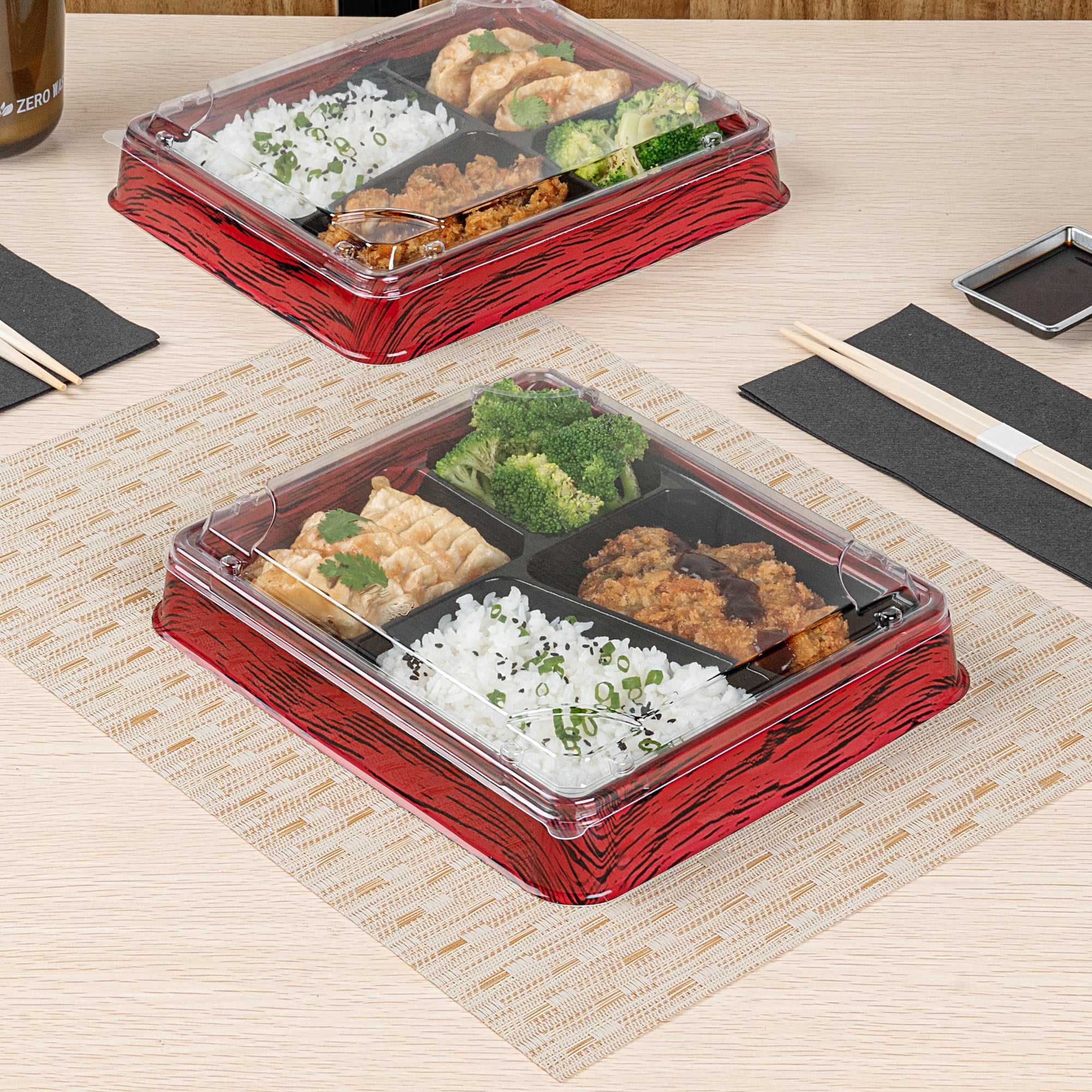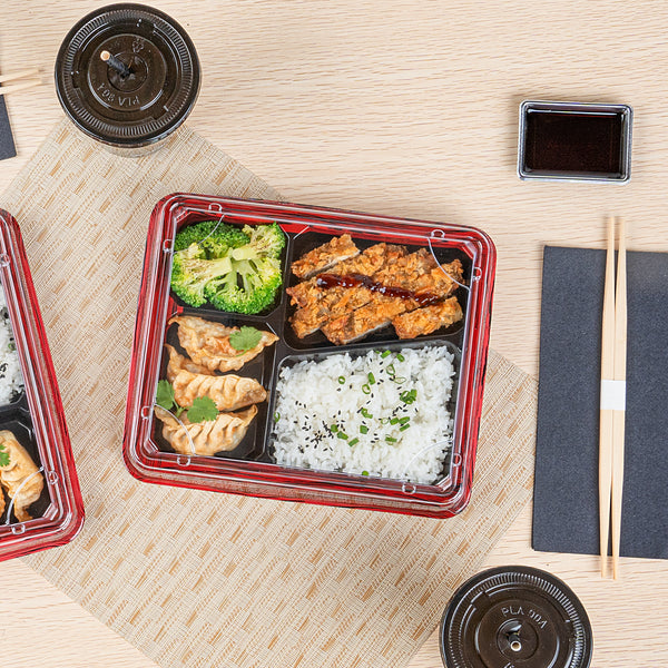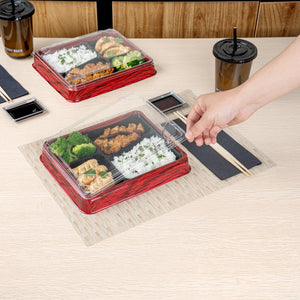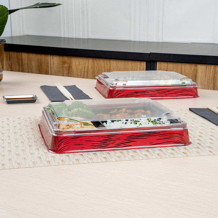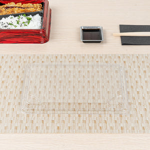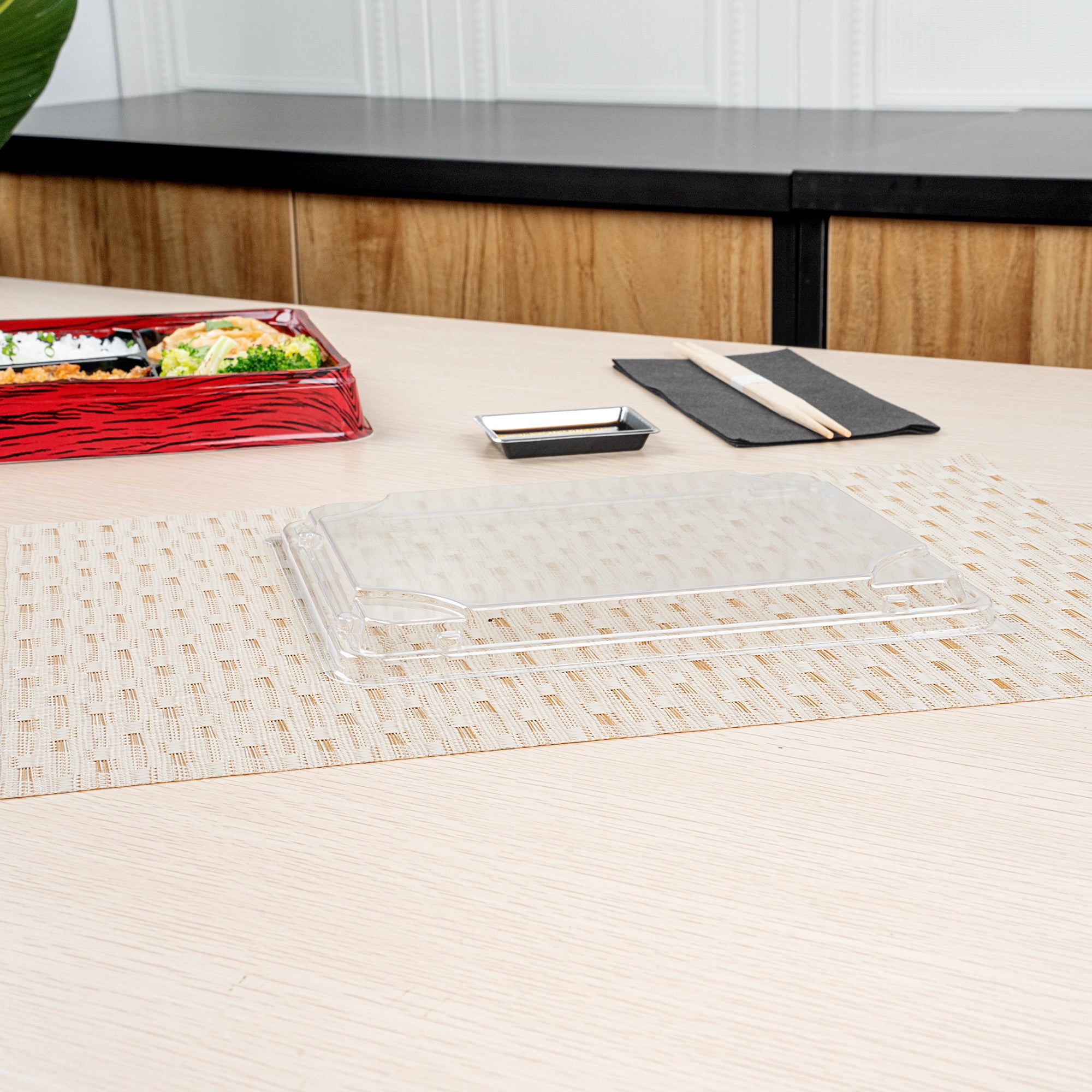 Make food transport a breeze with our Bento Tek Rectangle Clear Plastic Lids. These plastic lids perfectly fit onto compatible bento boxes (SKU: RWP1527B), making meals instantly portable for your customers. Crafted from premium plastic, these container lids are durable and sturdy, providing a reliable seal to keep your food fresh and secure during transport. The clear finish of these lids for food containers is great for showcasing your catering presentations. Designed for an effortless cleanup after serving, these clear lids are disposable and can be discarded after use. Ideal for eco-conscious foodservice establishments, these disposable lids are recyclable. Measuring 9 inches in length by 7.5 inches in width by 0.75 inches in height, these food container lids provide ample coverage for your meals. Sold in a 100 count box. Bento boxes are available and sold separately.