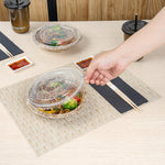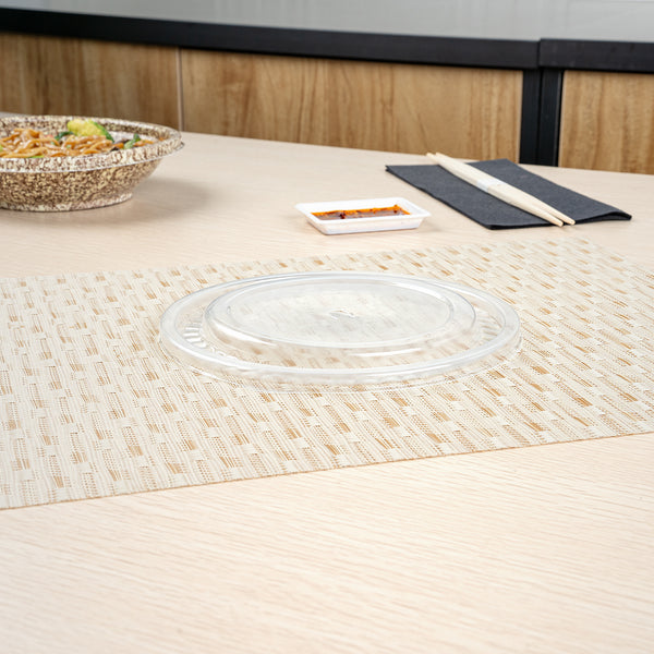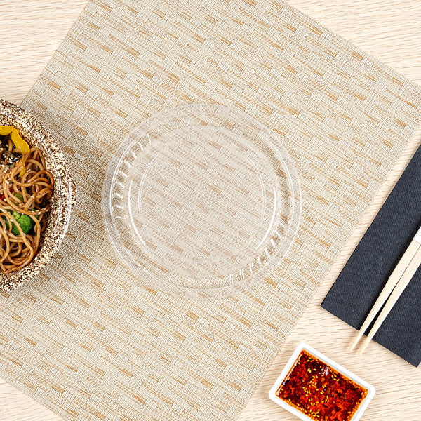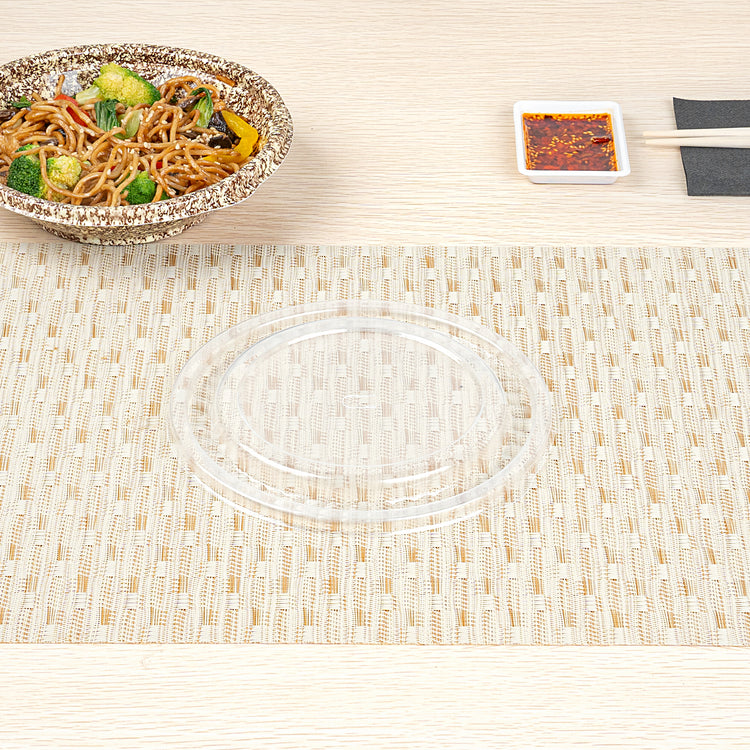 Seal in freshness with our Bento Tek Round Clear Plastic Lids. These plastic lids fit securely onto our collection of compatible Bento Tek bowls, making meals instantly portable for your customers. Created from premium plastic, these food container lids are durable and sturdy, forming a tight seal to keep your food fresh and secure during transport. The transparent finish of these container lids is ideal for showing off the your exquisite catering presentations. For an efficient cleaning experience after serving, these clear lids are disposable and can be discarded after use. Ideal for eco-conscious foodservice establishments, these disposable lids are recyclable and help reduce your carbon footprint. Measuring 7, these lids for food containers ensure a snug fit for your food containers. Sold in a 400 count box. Bowls are available and sold separately.