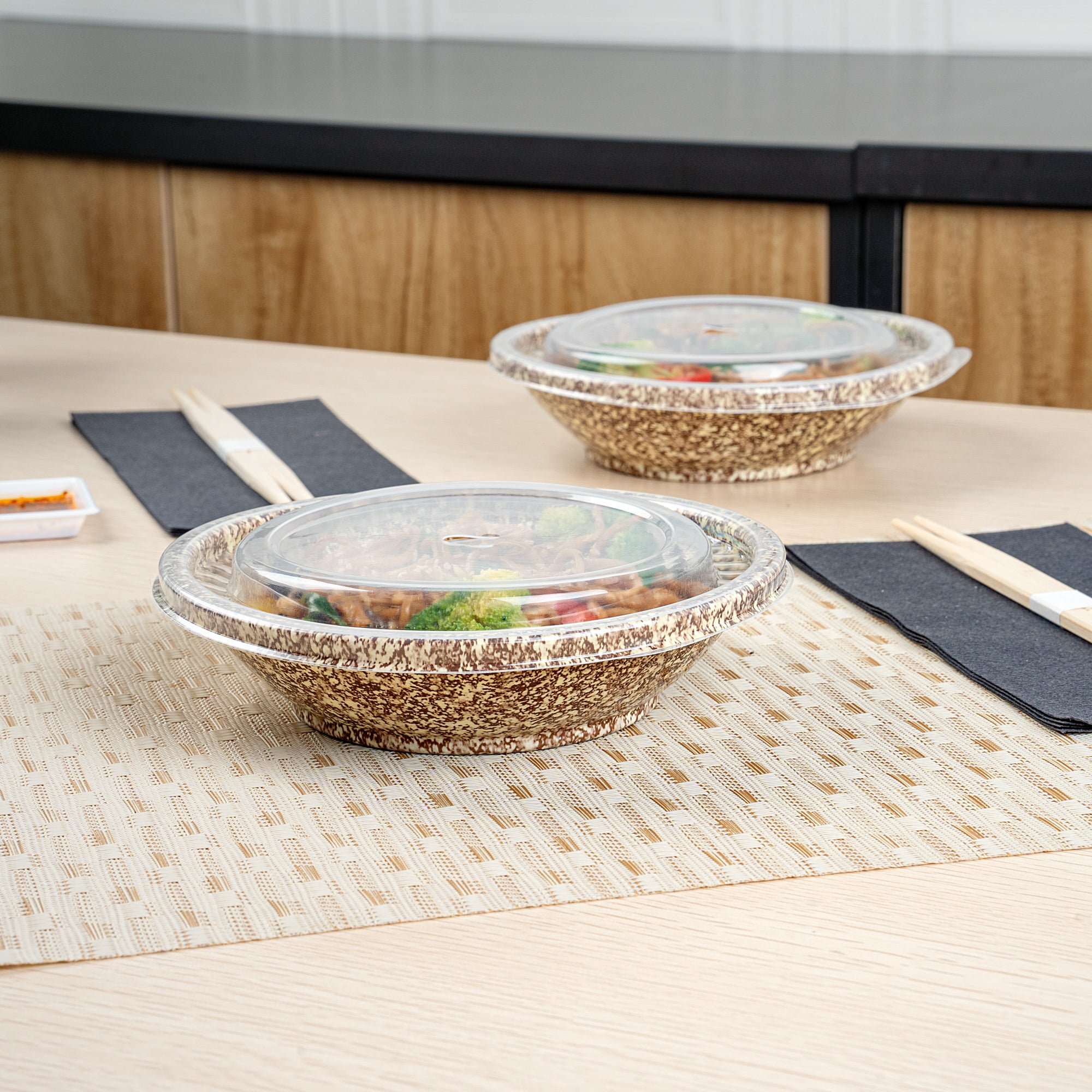 - Sturdy plastic protects your packed food during delivery
