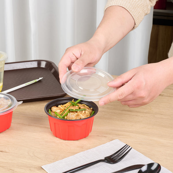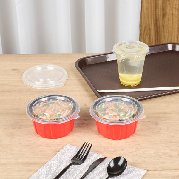 Keep your sides, snacks, and small portions fresh and secure with our Bento Tek Round Clear Plastic Lids. Designed to fit snugly onto compatible bento boxes (SKU: RWP1914R), these lids offer a reliable closure for seamless transport and delivery. Made from crack-resistant, durable plastic, they withstand handling and stacking without compromising performance. The clear design provides full visibility for quick food identification and attractive presentation. An easy-pull tab ensures effortless, smooth lid removal. Each lid measures 4.92 inches in diameter. Sold in a 200 count box.