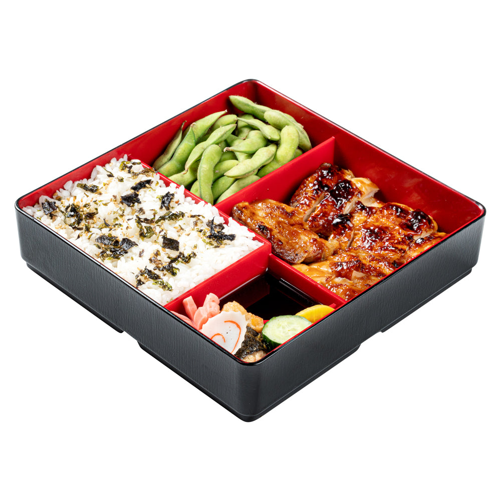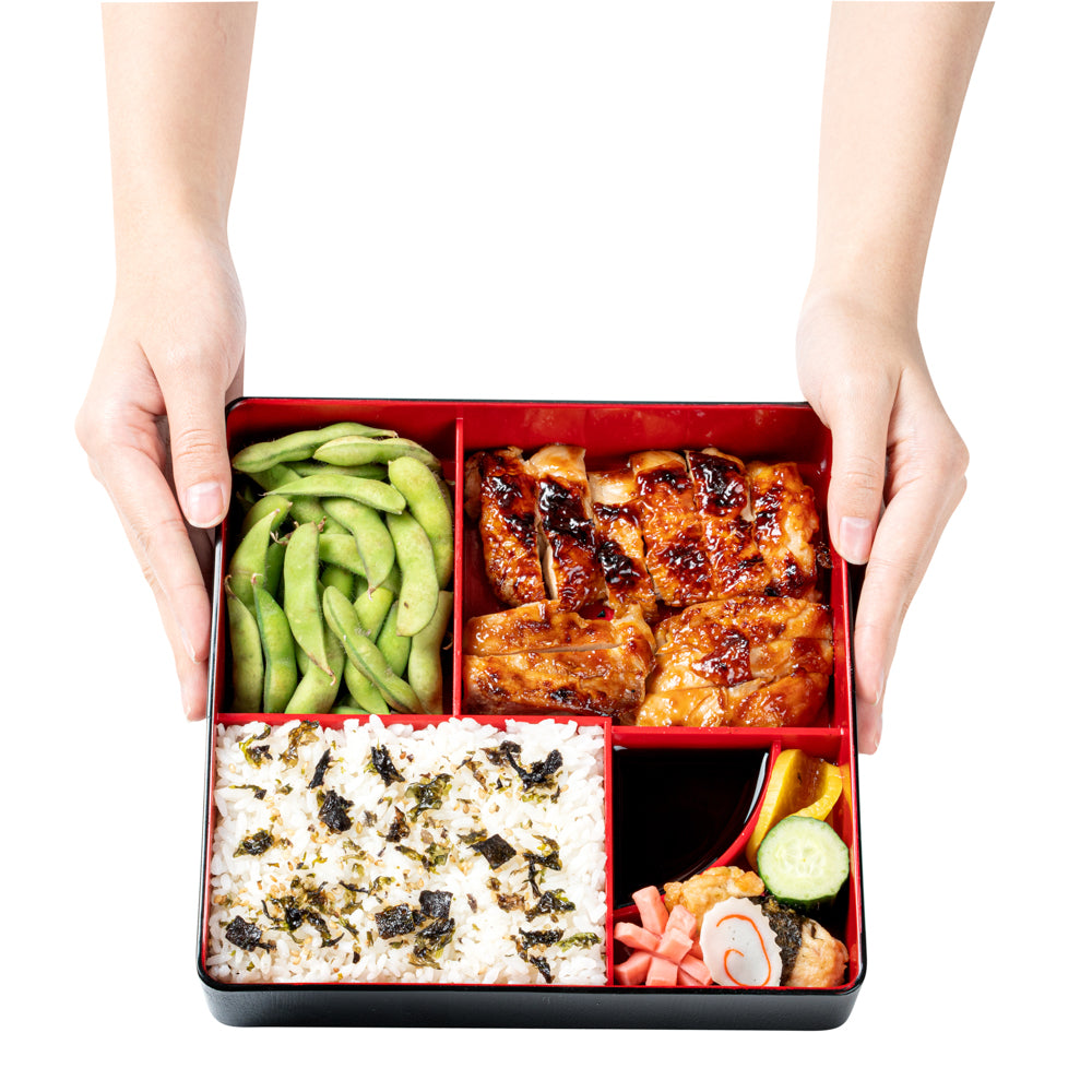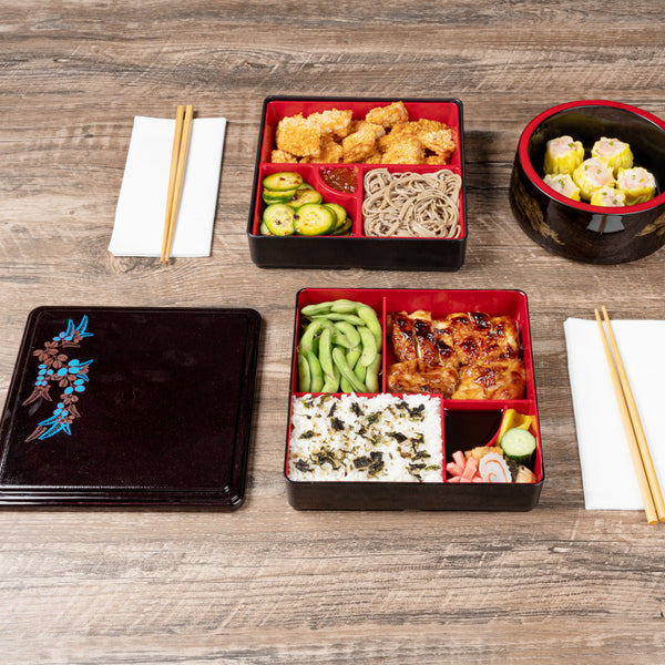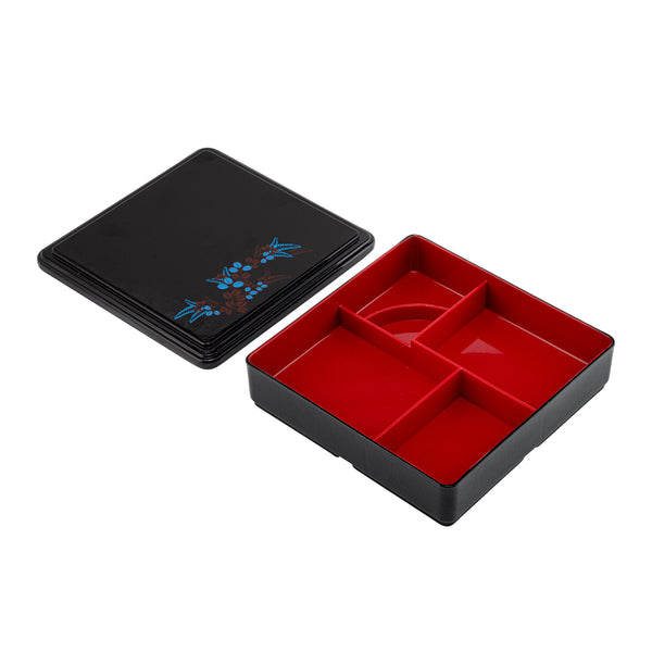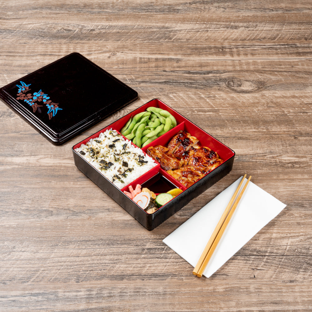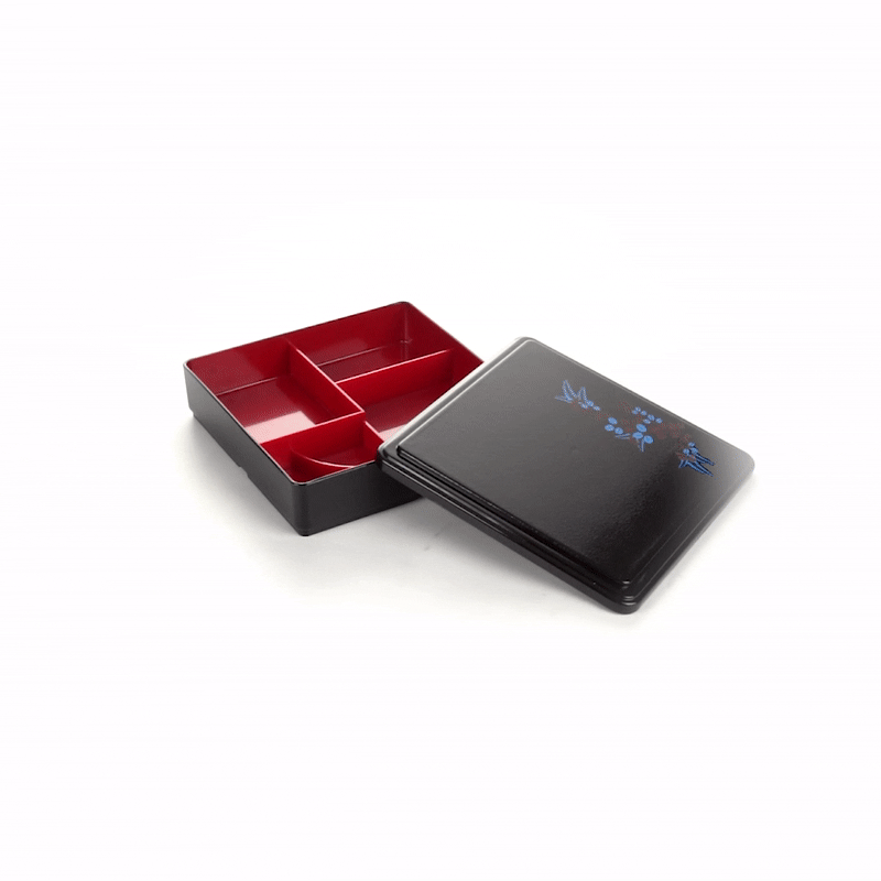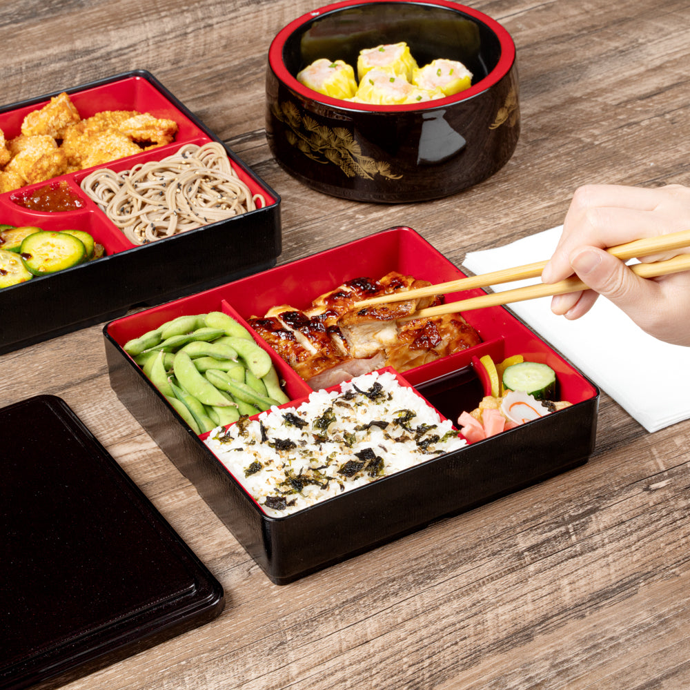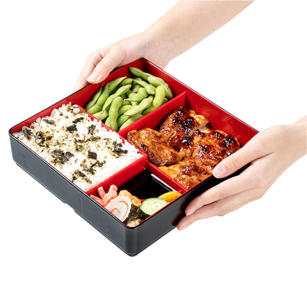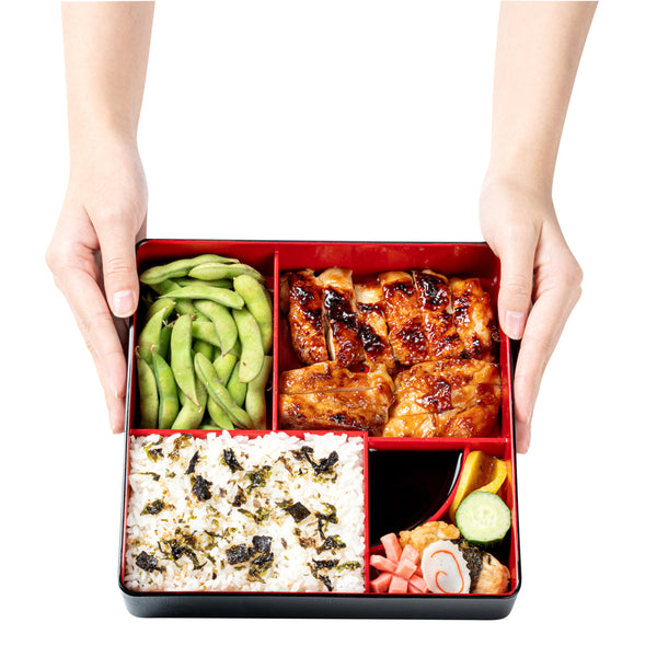 SQUARE BLACK AND RED JAPANESE STYLE BENTO BOX - 5 COMPARTMENTS