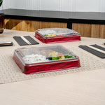 Seal your packed meals with our Bento Tek Square Clear Plastic Lids. These clear lids perfectly fit onto compatible bento boxes (SKU: RWP1533B) to ensure food remains fresh and secure during transport. Crafted from premium plastic, these container lids are both durable and sturdy, providing a reliable coverage for your food items. The clear finish of these plastic lids is ideal for showcasing your catering presentations. For effortless cleanup, these food container lids are disposable and can be discarded after use. Suitable for eco-conscious foodservice establishments, these disposable lids are recyclable, adding an eco-friendly touch. Measuring 8.25 inches in length by 8.25 inches in width by 0.75 inches in height, these lids for food containers are designed for convenience. Sold in a 100 count box. Bento boxes are available and sold separately.