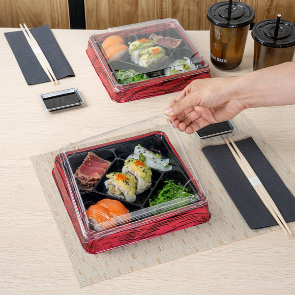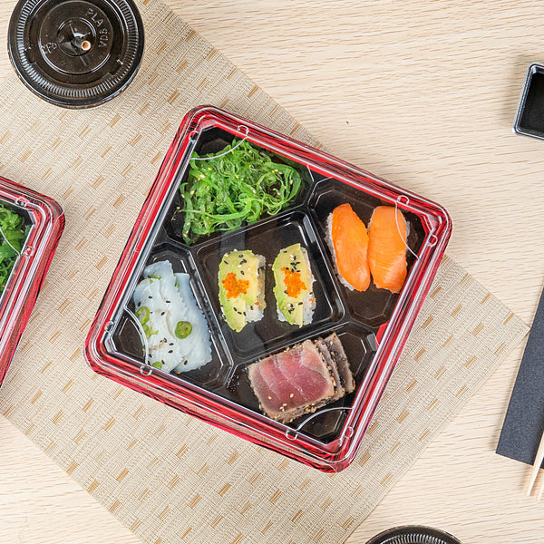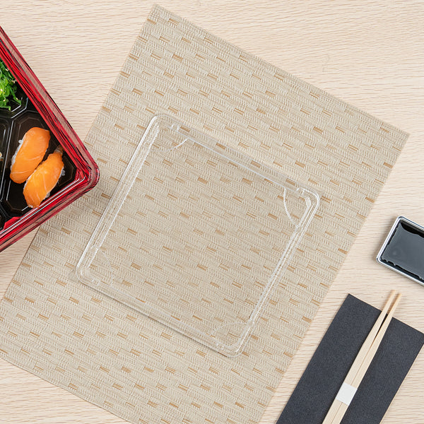 Ensure the freshness and portability of your meals with our Bento Tek Square Clear Plastic Lids. These plastic lids perfectly fit onto compatible bento boxes (SKU: RWP1535B-50) making your meals instantly portable for customers. Crafted from premium plastic, these lids for food containers are durable and sturdy, providing a reliable seal to keep your food intact in transit. These clear lids beautifully showcase ideal for showcasing your catering presentations. Designed for effortless cleanup, these food container lids are disposable and can be tossed after use. Suitable for eco-conscious foodservice establishments, these disposable lids are recyclable. Measuring 8.25 inches in length by 8.25 inches in width by 0.75 inches in height, these container lids offer a perfect fit. Sold in a 50 count box. Bento boxes are available and sold separately.