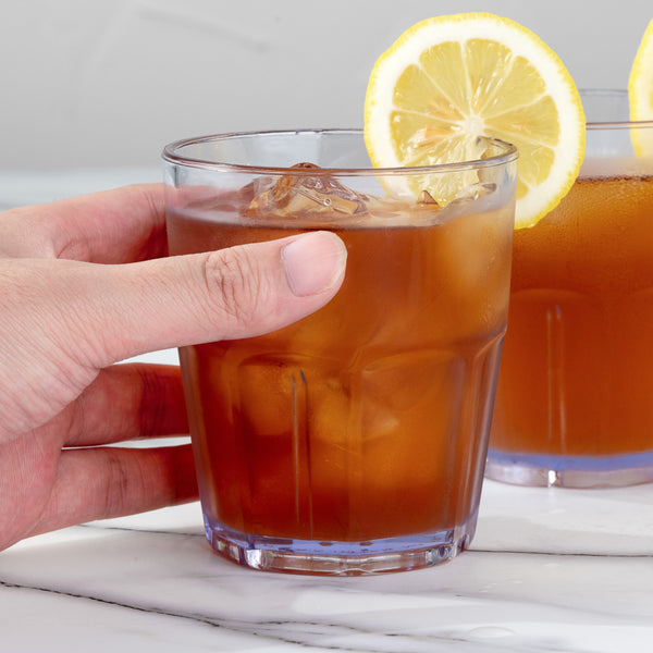 Serve customers' drink orders using our Bev Tek 12-ounce Round Clear Plastic Tumblers. These plastic tumblers are inherently durable, allowing you to serve beverages without worrying about the tumblers shattering. Featuring a paneled design, these clear plastic tumbler glasses seamlessly display your colorful smoothies or fresh juices and add a sophisticated touch to every order. These tumblers are dishwasher-safe and recyclable, providing your staff with a simple way to clean tumblers or customers an eco-friendly way to dispose of cups after use. With anti-jam locking tabs, these stackable 12-ounce tumblers offer you a hassle-free way to separate tumblers and streamline your drink preparation process. Containing up to 12 ounces, these tumbler drinking glasses measure 3.5 inches in diameter by 4 inches in height. Sold in a 10 count box.