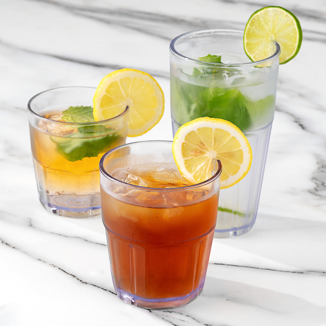 - Shatter-resistant plastic withstands everyday use at busy restaurants