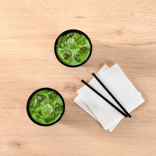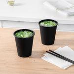 Serve warm teas or chilled juices using our Bev Tek 12-ounce Round Matte Black Plastic Hot and Cold Drinking Cups. These plastic drinking cups have a rolled rim for comfortable sipping, and a flexible yet sturdy construction to provide a good grip. Great for serving cold drinks or hot drinks with sleeves, use these drinking cups to serve beverages with temperatures ranging between 14F to 248F. Made from durable BPA-free plastic, these drinking cups are disposable for a speedy cleanup after events. To make your beverages portable, pair these drinking cups with their matching lids (SKU: RWP0558 and RWP0559). With a matte black finish, these plastic drinking cups are a sleek and stylish option for your foodservice establishment. These black drinking cups have a tapered design for easy stacking and space-saving storage. For an easy cleanup, these black drinking cups are conveniently disposable. To reuse these drinking cups, simply place them on the top rack of your dishwasher. Made to hold up to 12 ounces, these black drinking cups measure 3.5 inches wide by 4 inches tall. Available in a 100 count box. Lids are available and sold separately.