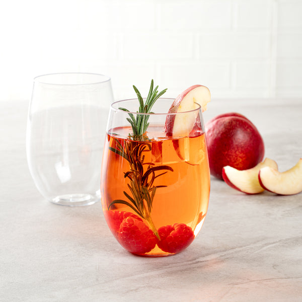With a crystal-clear design, these reusable plastic stemless wine glasses expertly showcase drinks at your bar or holiday party. Great for various types of mixed drinks, juice, and more!