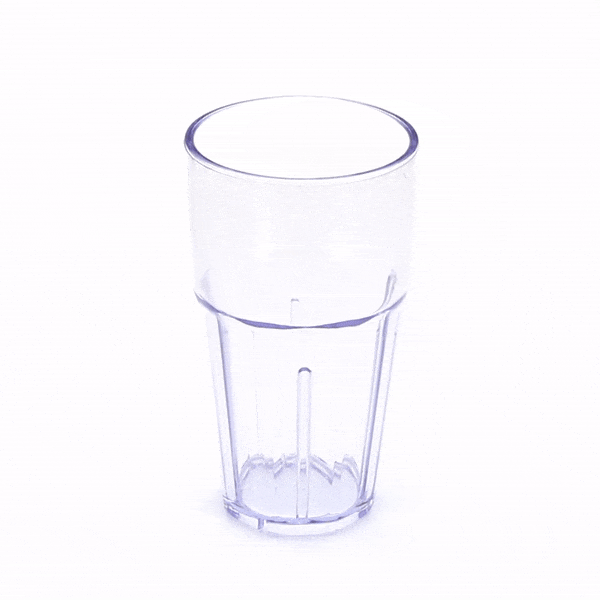 Pour refreshing drinks into our Bev Tek 16-ounce Round Clear Plastic Tumblers. Featuring a stylish paneled design, these clear tumblers provide a secure grip to avoid spills while enhancing your drink presentations. Great for space-saving storage, these disposable plastic tumblers are stackable and feature anti-jam tabs to keep stacked cups from getting stuck together. With a crystal clear finish, these plastic cups show off the bright colors of your fruit juices and ice teas. Made from premium plastic, these drinking cups are shatter-resistant to endure everyday use at your quick-service restaurant, bar, or outdoor catered event. To reduce your establishment's carbon footprint, these plastic glasses are recyclable. Each plastic bar glass can be lightly reused and is conveniently dishwasher-safe for easy cleanup. These 16-ounce tumblers measure 3.5 inches in diameter and 6 inches in height. Sold in a 50 count box.