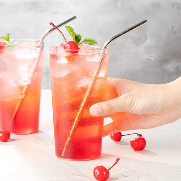 These plastic drinking glasses are suitable to withstand dishwasher use. Plus, they're reusable for continuous serving.