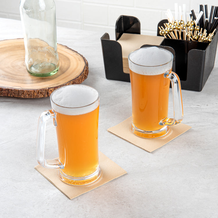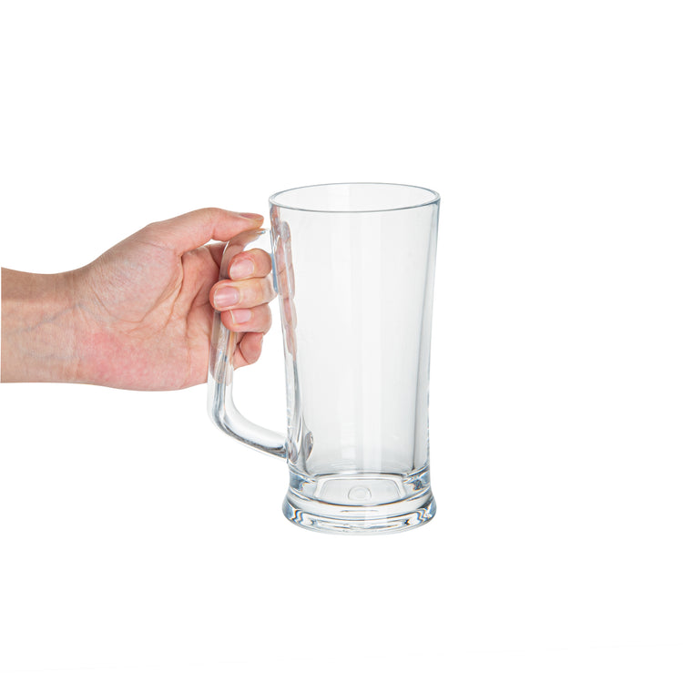 Elevate your beverage service with our Bev Tek 17-ounce Beer Mugs. These superior beer mugs are crafted from shatterproof polycarbonate plastic, offering the aesthetics of glass with the security and durability of plastic. The unique design of these plastic cold beverage mugs features a sturdy base and a smooth rim, enhancing the drinking experience and reducing the risk of spills. With their clear finish, these pilsner beer mugs showcase your drinks in a visually appealing manner, making them an excellent choice for caterers, restaurants, and bistros. Made to withstand repeated use, these dishwashable mugs are a practical choice for high-volume establishments. These 17-ounce mugs measure 4.75 inches in length by 3.25 inches in width by 6.5 inches in height, making them a comfortable hold for your guests. Sold in a 48 count box.