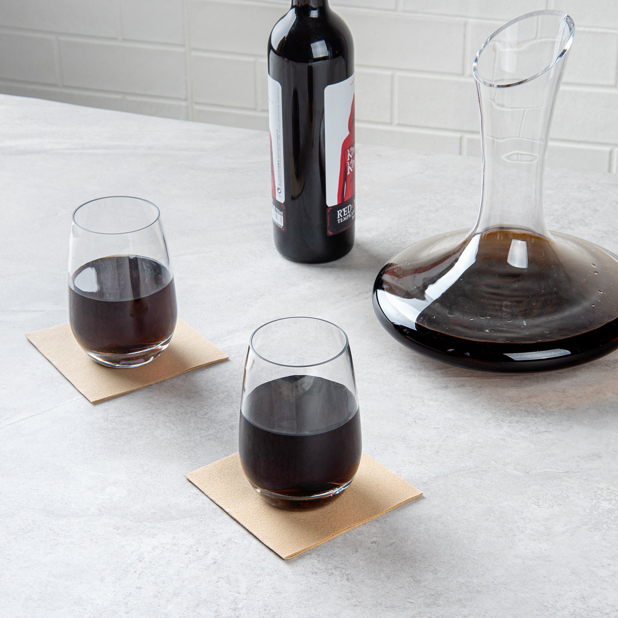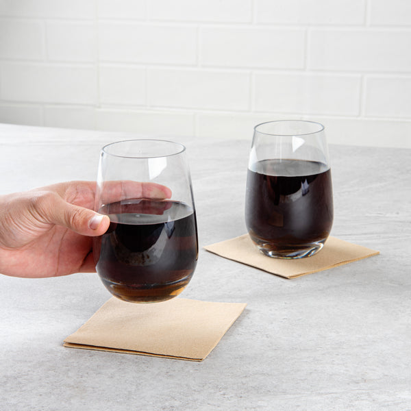 Elevate your beverage service with our Bev Tek 17-ounce Plastic Stemless Wine Glasses. These plastic wine glasses, made of polycarbonate plastic, are designed to withstand the rigors of busy settings, making them an excellent choice for restaurants, bistros, and catering events. The smooth rim of these stemless wine glasses ensures a comfortable drinking experience, enhancing your guests' overall enjoyment. These clear glasses add a touch of elegance while allowing the beautiful colors of your chilled beverages to shine through. With a sturdy base, these unique plastic drink glasses provide stability, reducing the risk of spills and breakage. Plus, these glasses are also dishwashable, making clean-up a breeze after a bustling event. Measuring 3.5 inches in diameter by 5 inches in height, these 17-ounce glasses have a generous capacity ideal for serving various chilled beverages. Sold in a 48 count box.